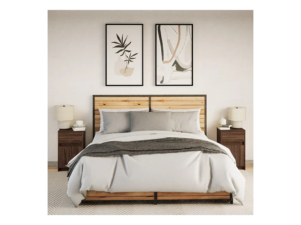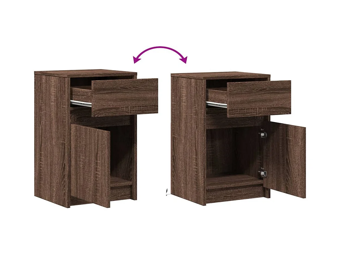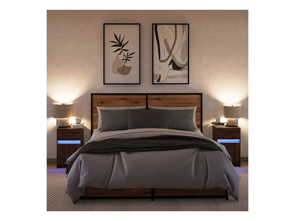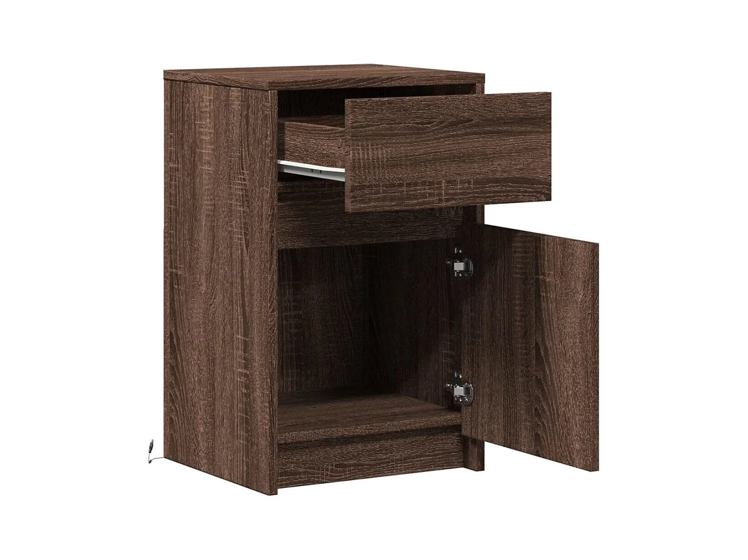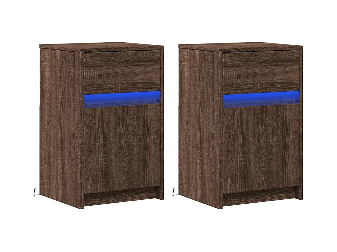 Pack 2 uds Mesitas de noche | Mesilla de noche con luces LED roble marrón 35x39x55 cm