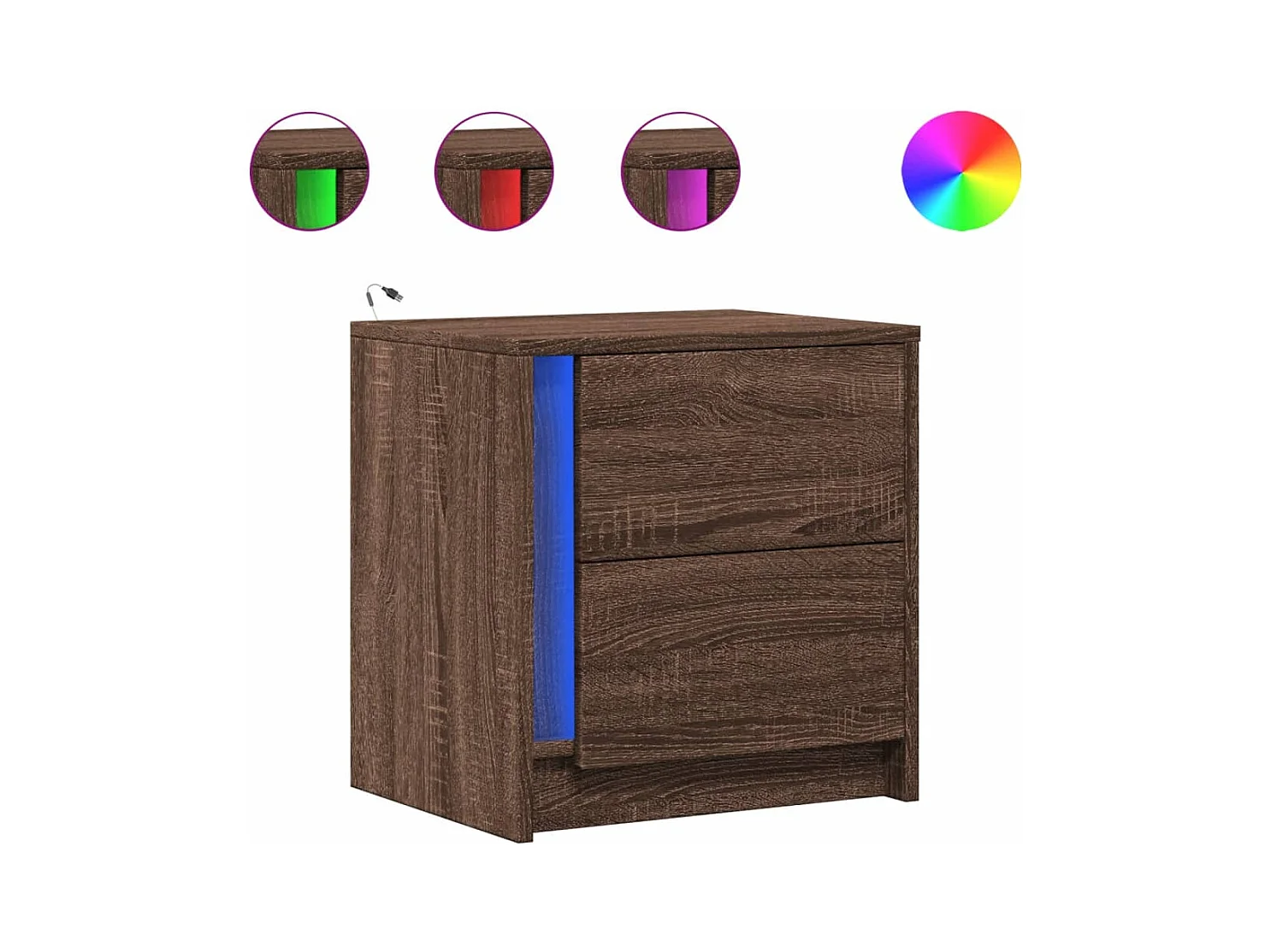 Mesitas de noche | Mesilla de noche con luces LED 2 uds marrón roble 40x39x48,5cm