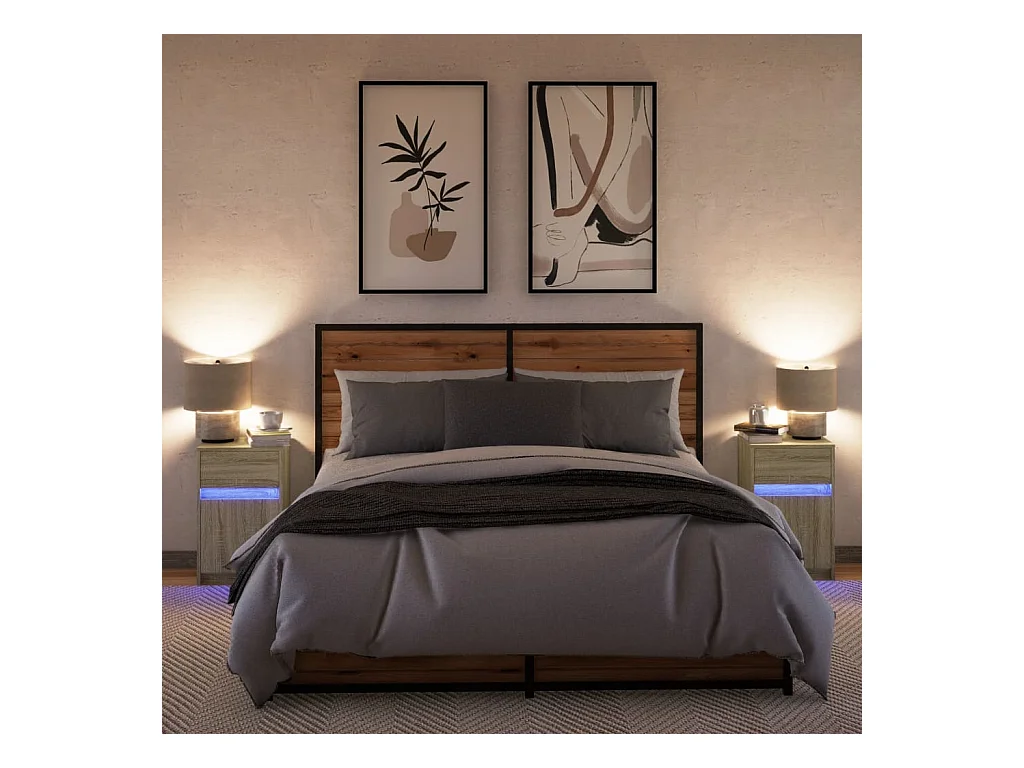 Pack 2 uds Mesitas de noche | Mesilla de noche con luces LED roble Sonoma 50x40x45 cm