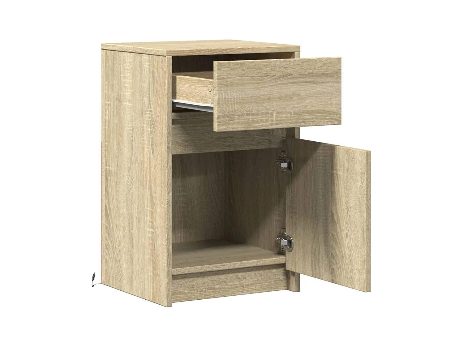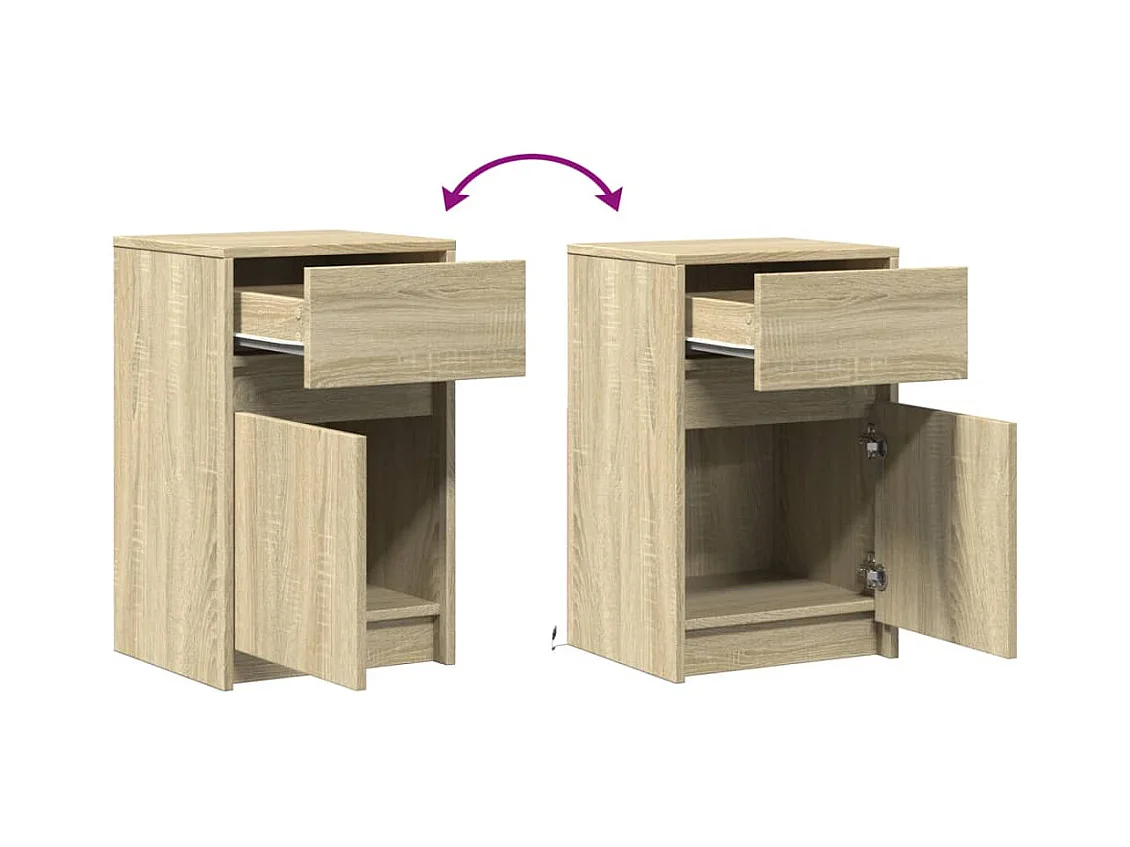 Pack 2 uds Mesitas de noche | Mesilla de noche con luces LED roble Sonoma 35x39x55 cm