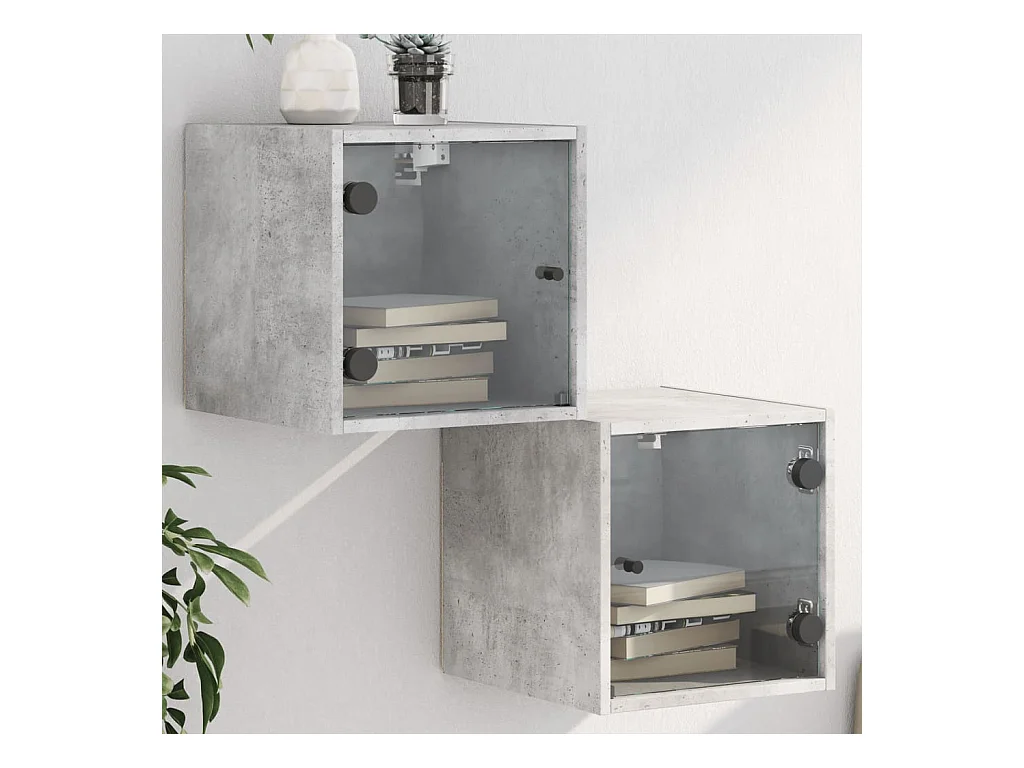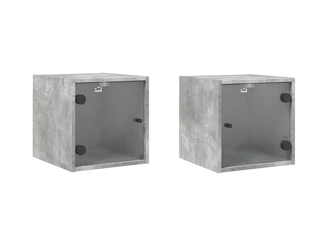 Mesitas de noche | Mesilla de noche puertas de vidrio 2 uds gris hormigón 35x37x35 cm