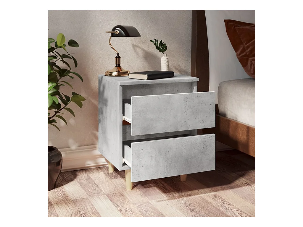 Mesitas de noche patas de pino 2 piezas gris hormigón 40x35x50 cm