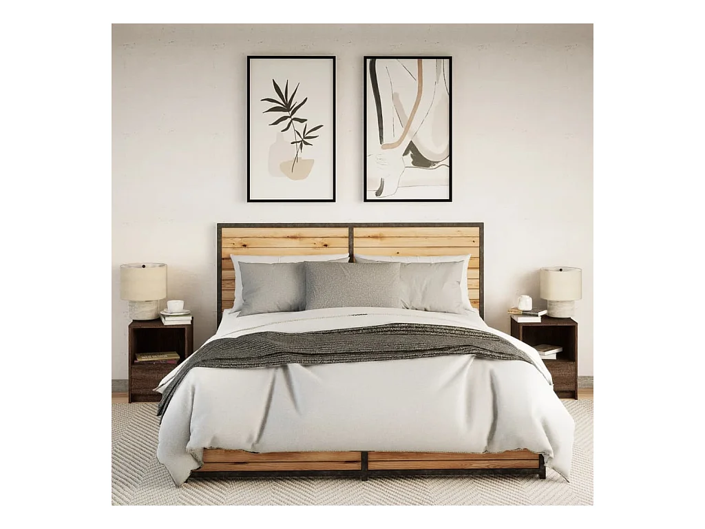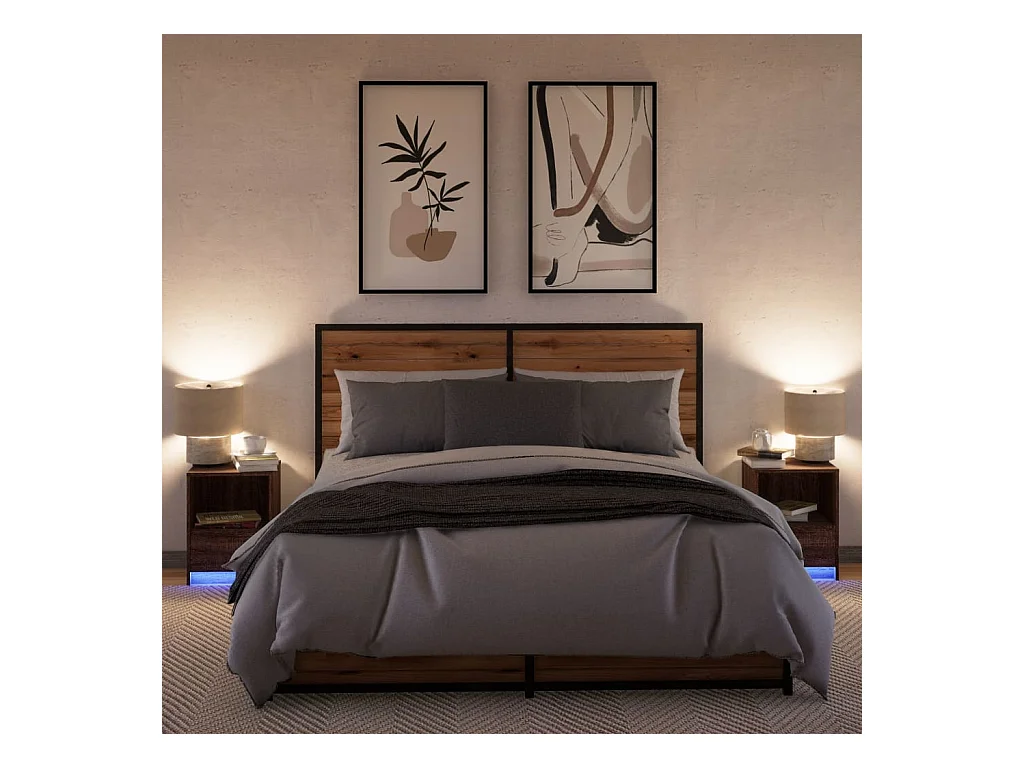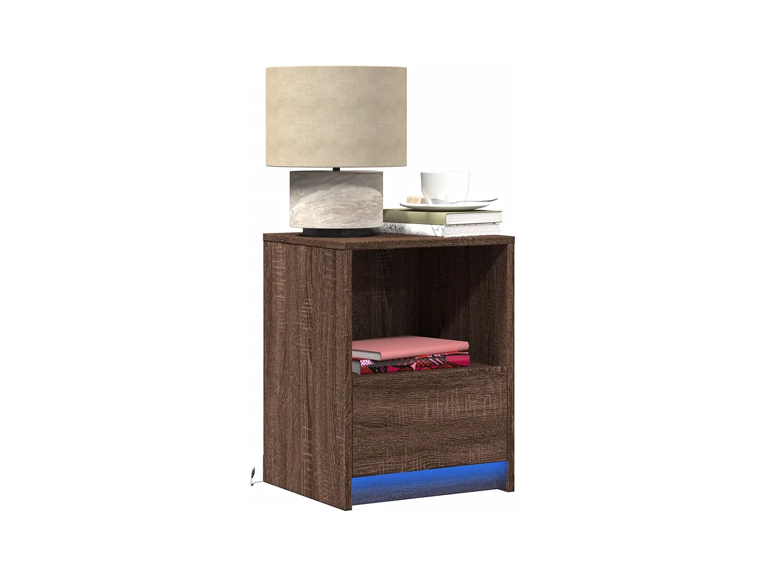 Mesitas de noche y luces LED 2 piezas marrón roble