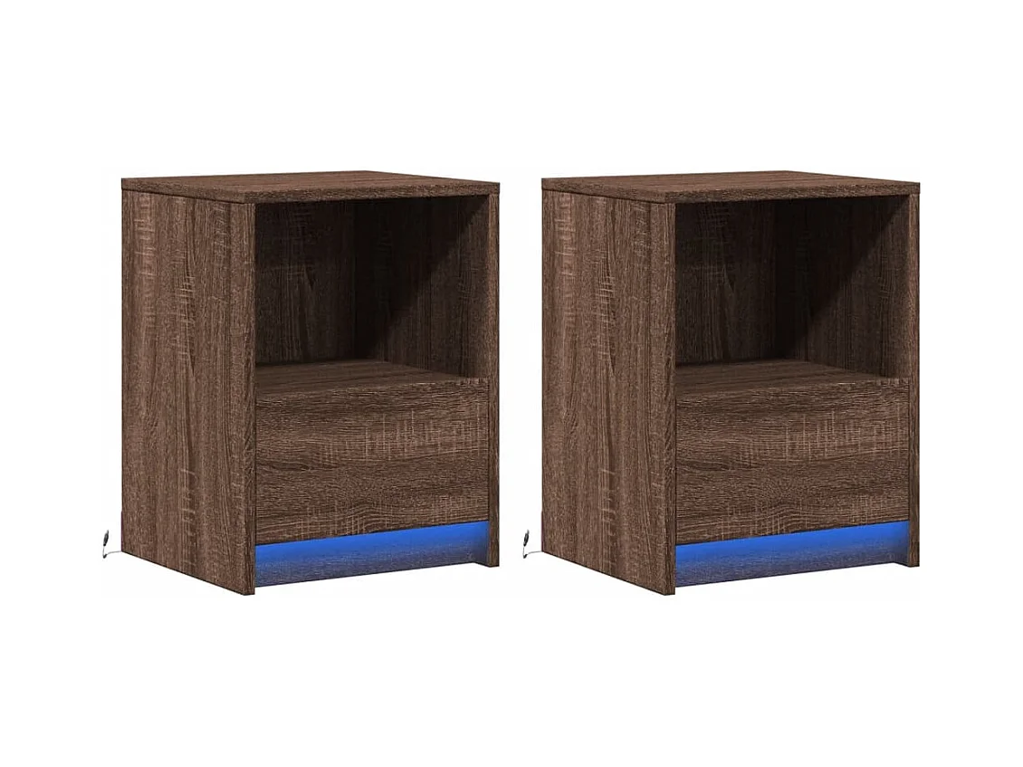 Mesitas de noche con luces LED 2 piezas roble marrón 38x34x50cm