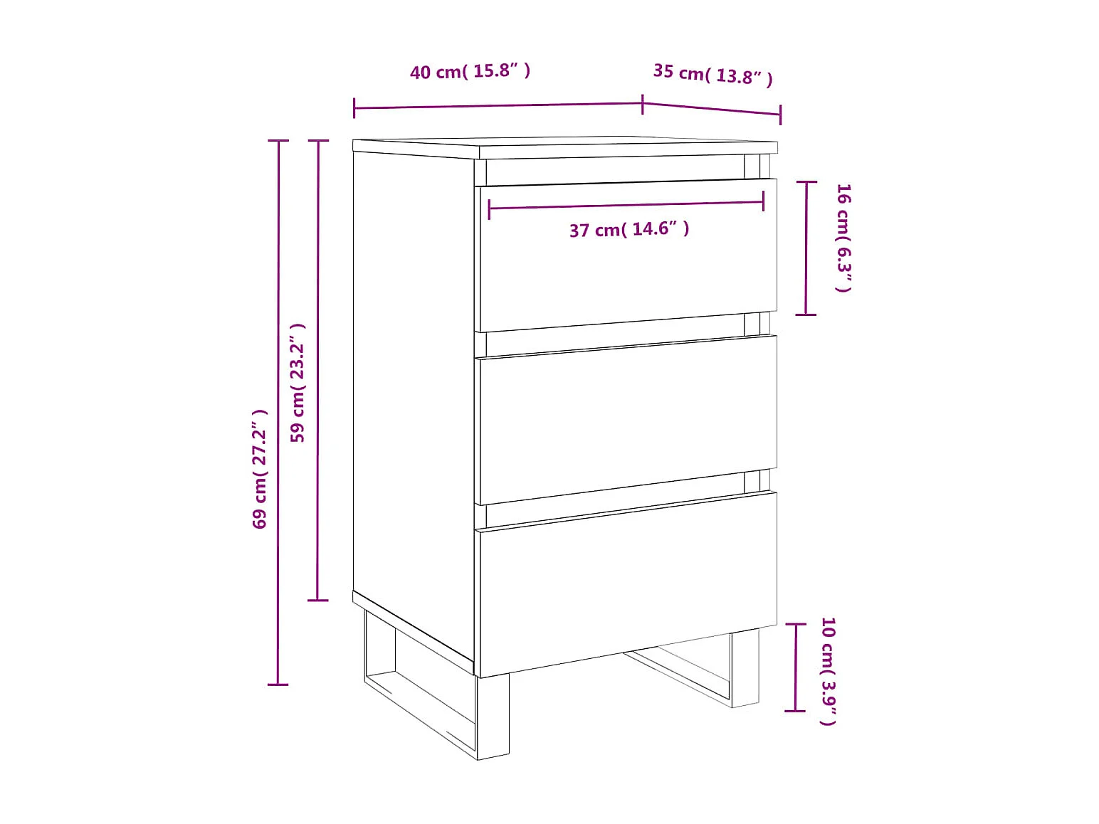 Mesitas noche 2 uds madera ingeniería blanco brillo 40x35x69 cm