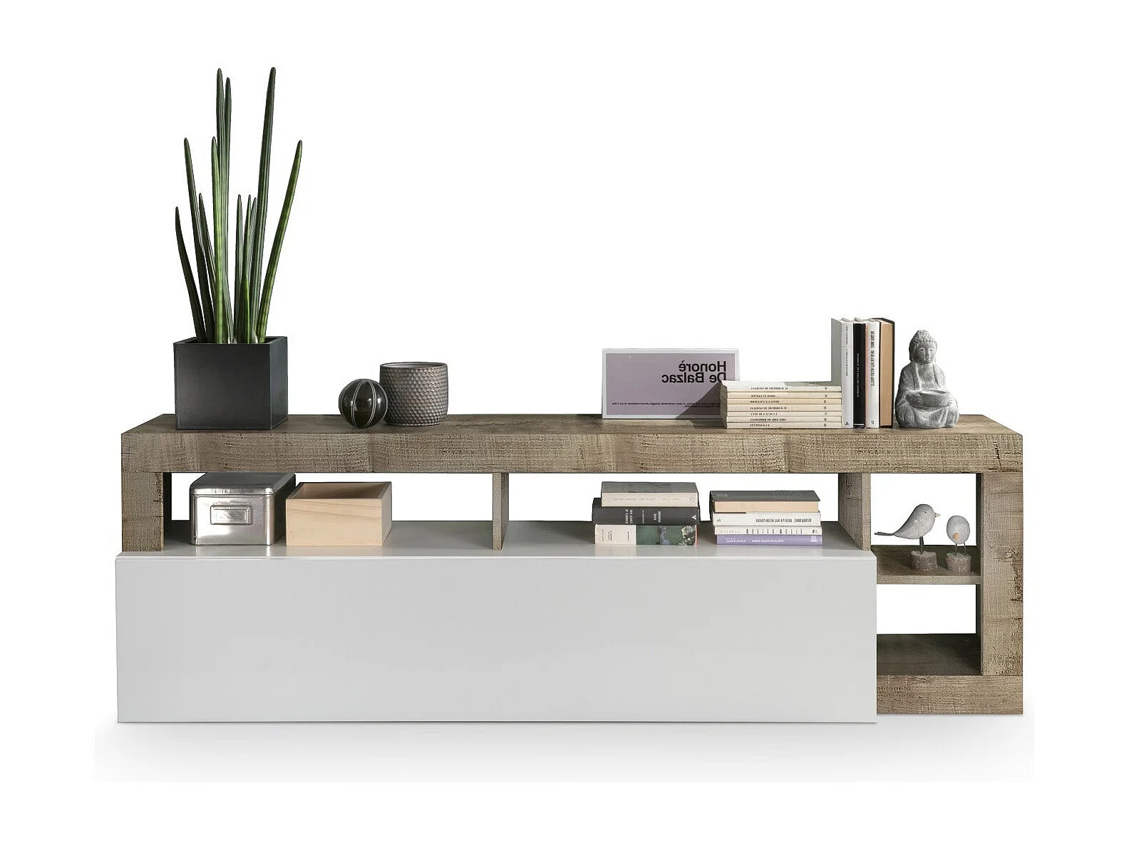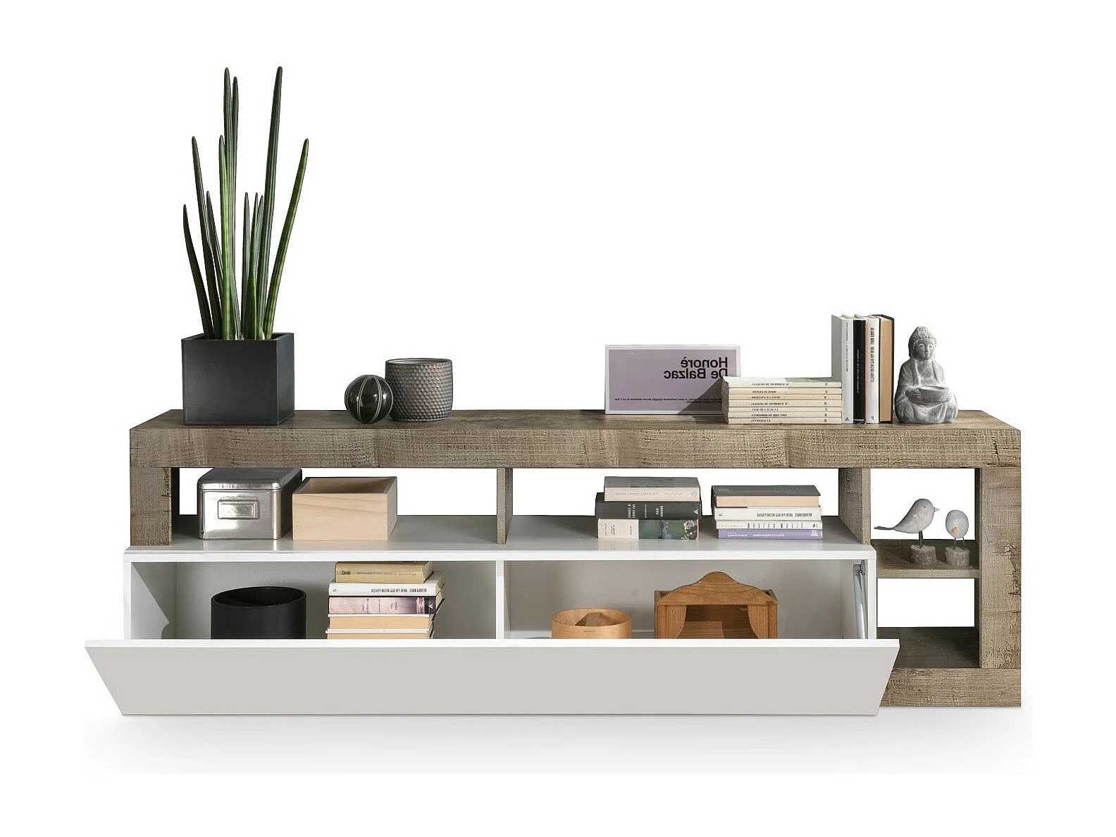 Meuble TV AMOS blanc/poirier