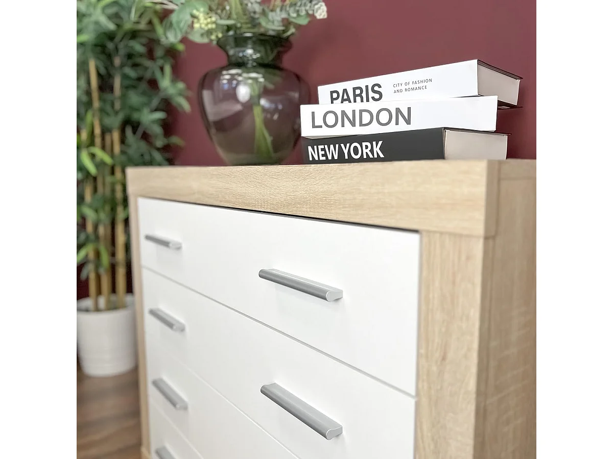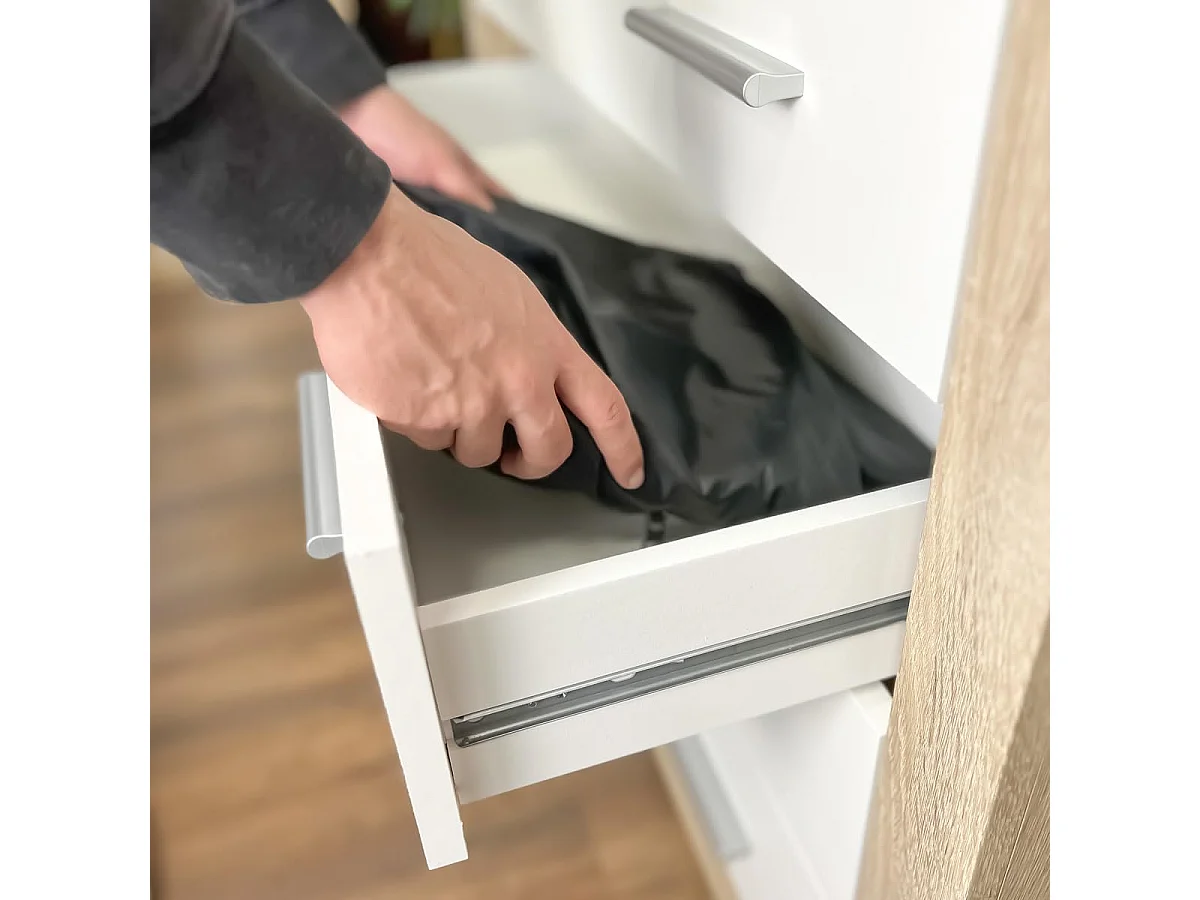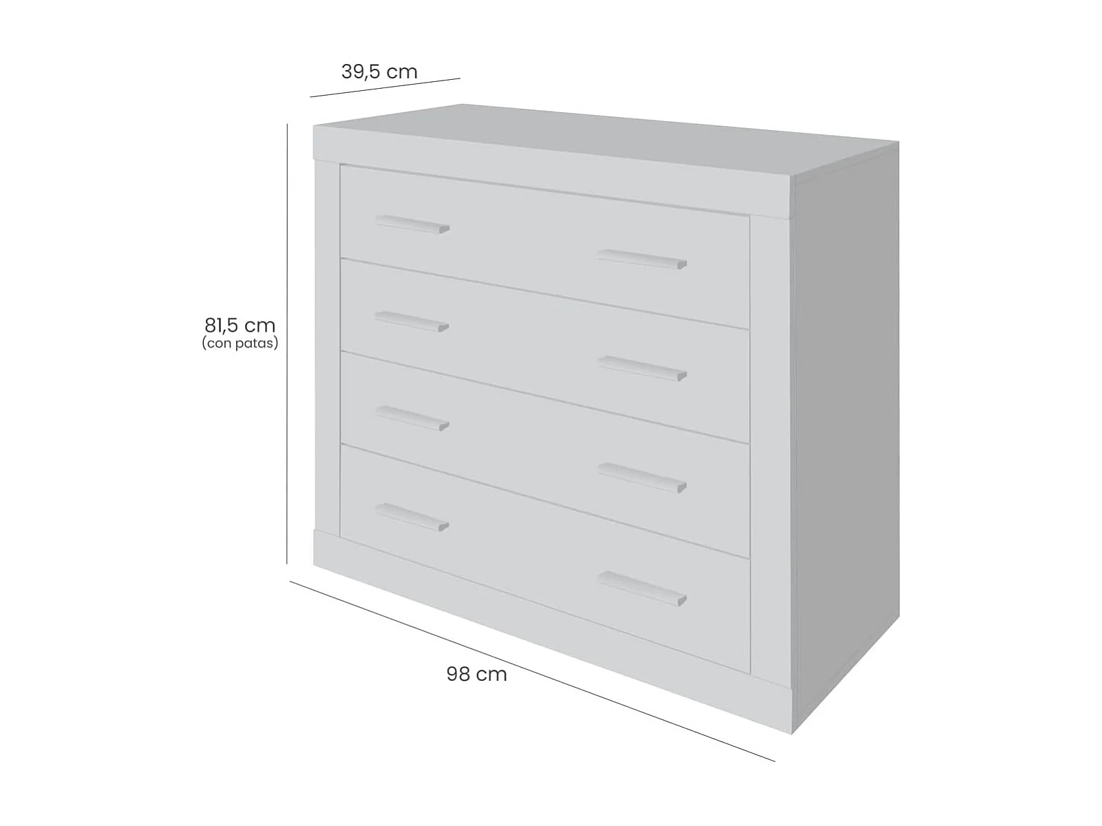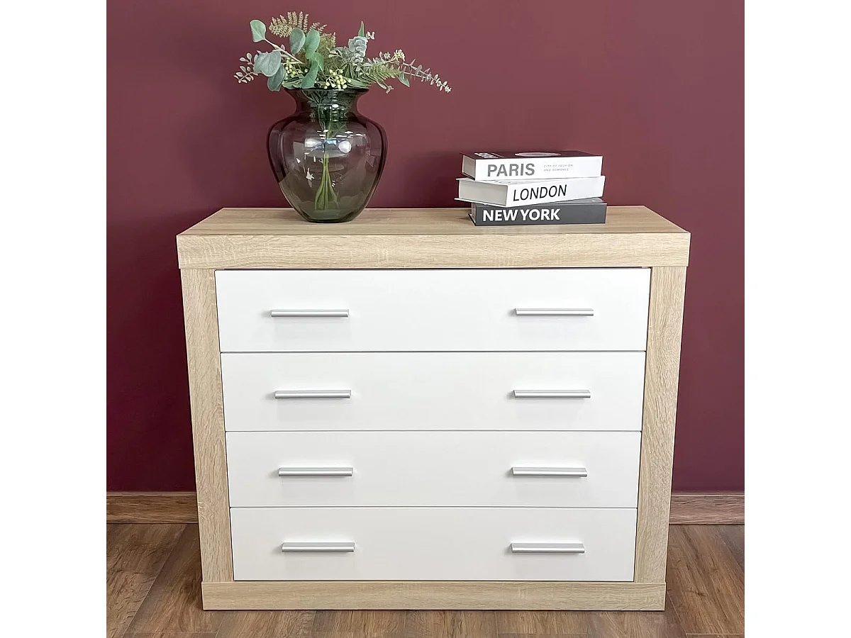 Meyvaser - Cómoda con 4 Cajones, Sinfonier, Práctica y Funcional, Color Cambria y Blanco, Medidas: 60 cm (An) x 81.5 cm (Al) x 39.5 cm (Fo)