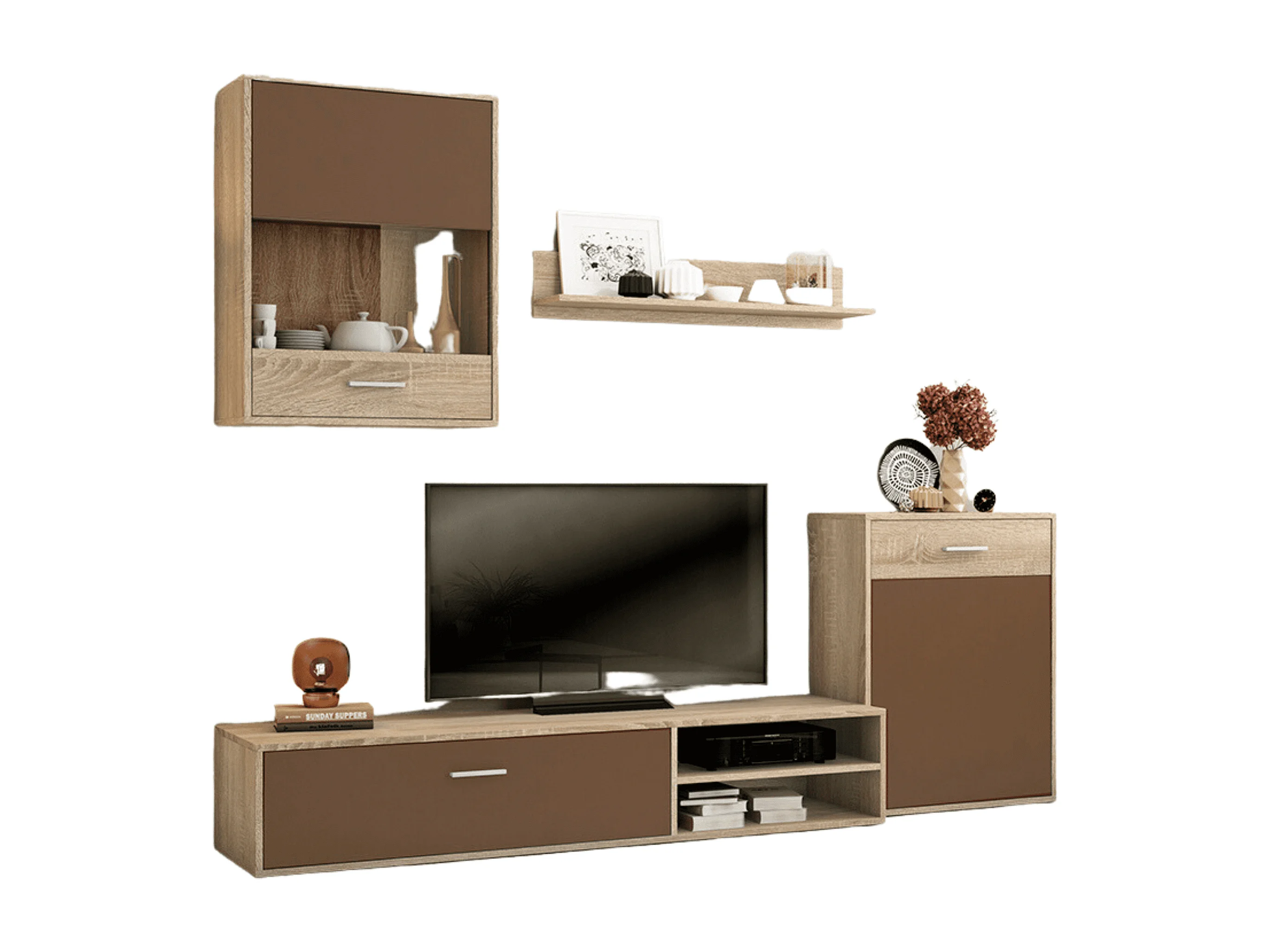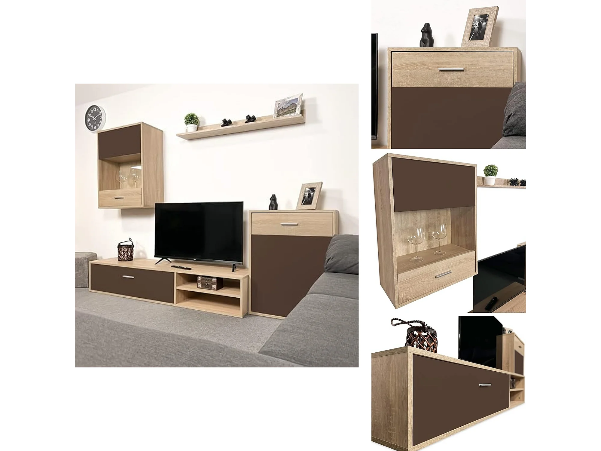 Meyvaser, Conjunto de muebles de salón 220 cm Color cambrian y Chocolate , muebles de salón.