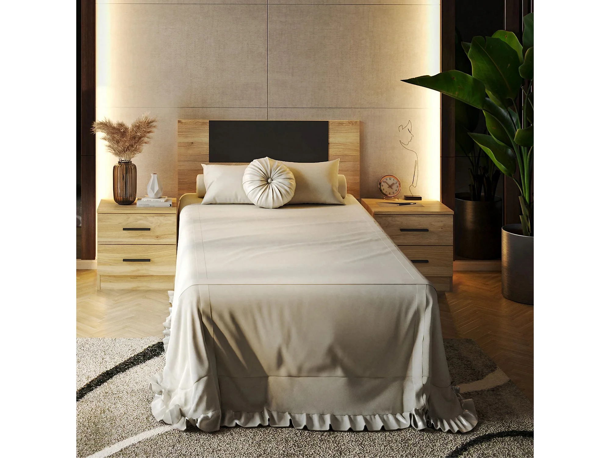 Meyvaser Conjunto Pack Cabecero y 2 Mesitas de Noche,Mesilla de noche 3 Cajones Color Mauvella, Medidas:110x45x1,6 cm (LargoxAltoxProfundo)