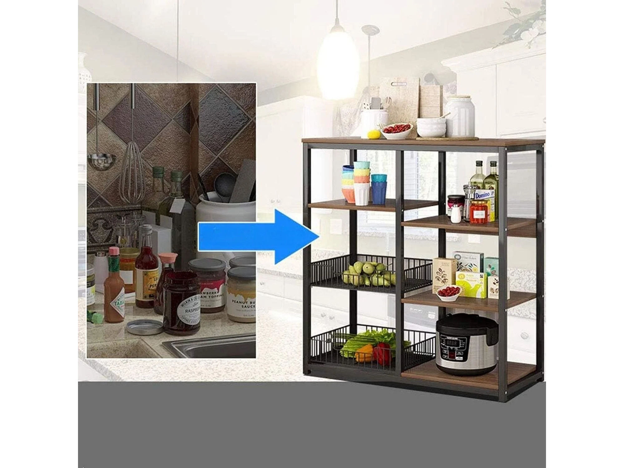 Meyvaser, Estante de Cocina, Mueble de Almacenamiento, para Horno microondas, con 2 cestas metálicas de Malla, 4 Niveles , 80 x 30 x 101 cm, Negro