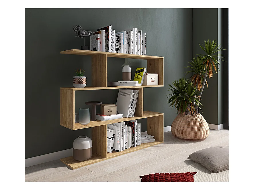 Meyvaser Librería Estantería Asimétrica baja Para Salón de Madera Color Mauvella 96,3x110x24,6 cm
