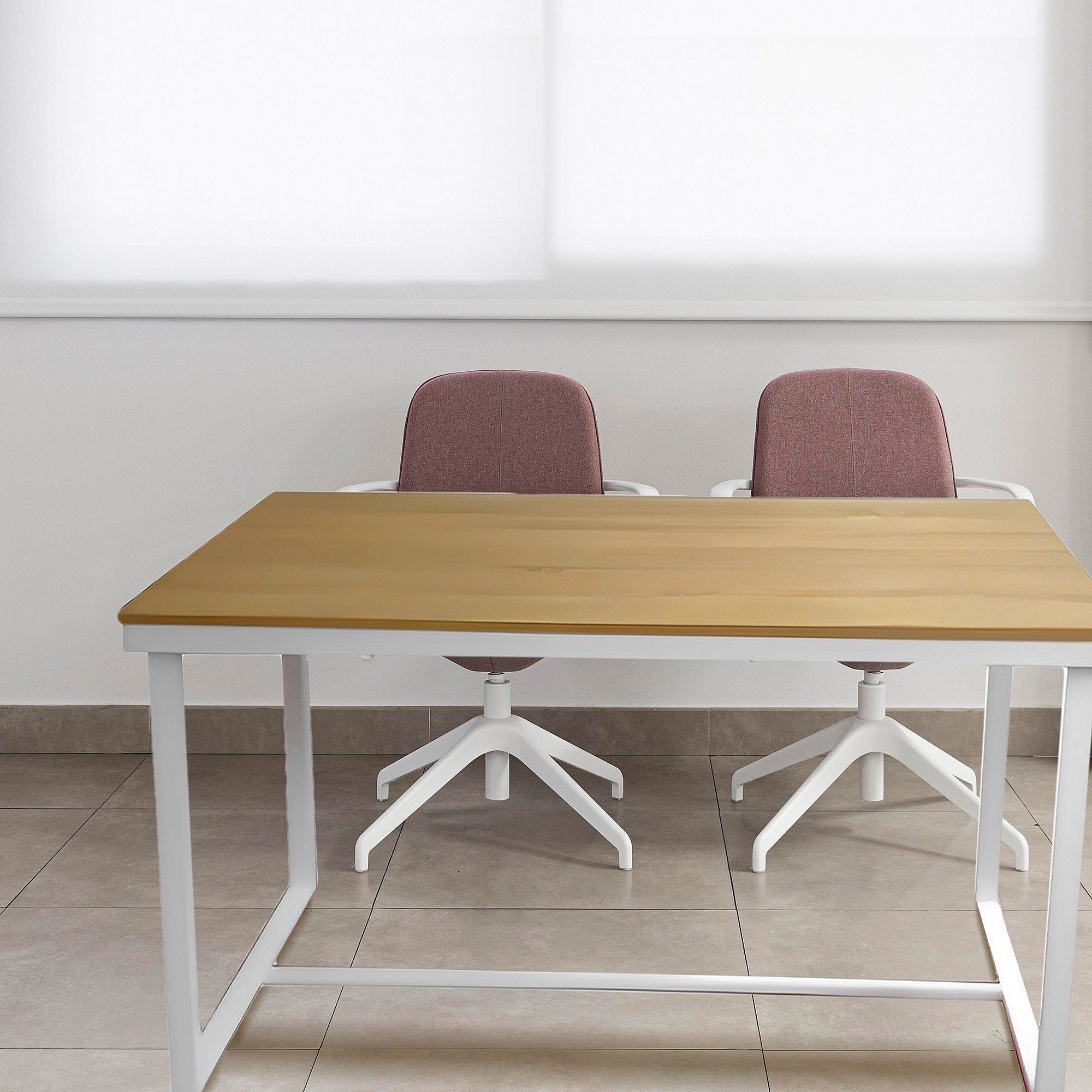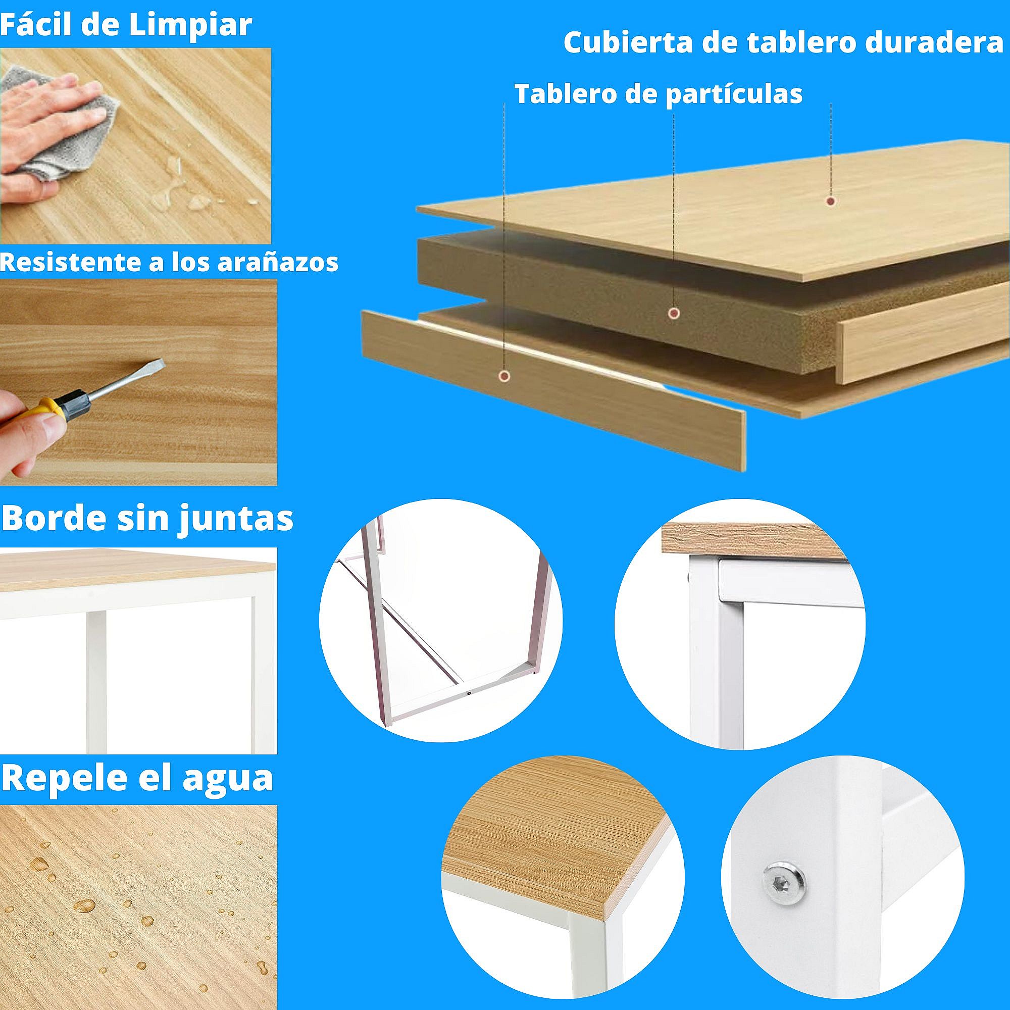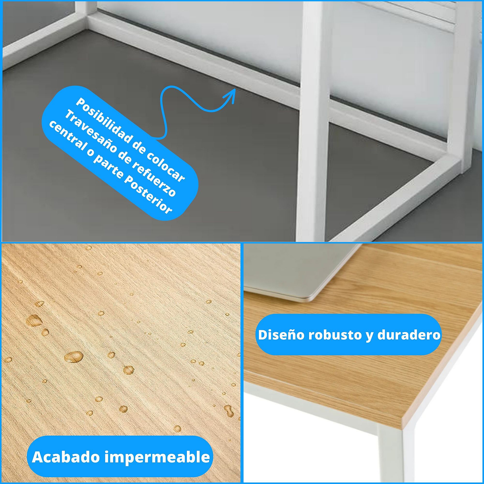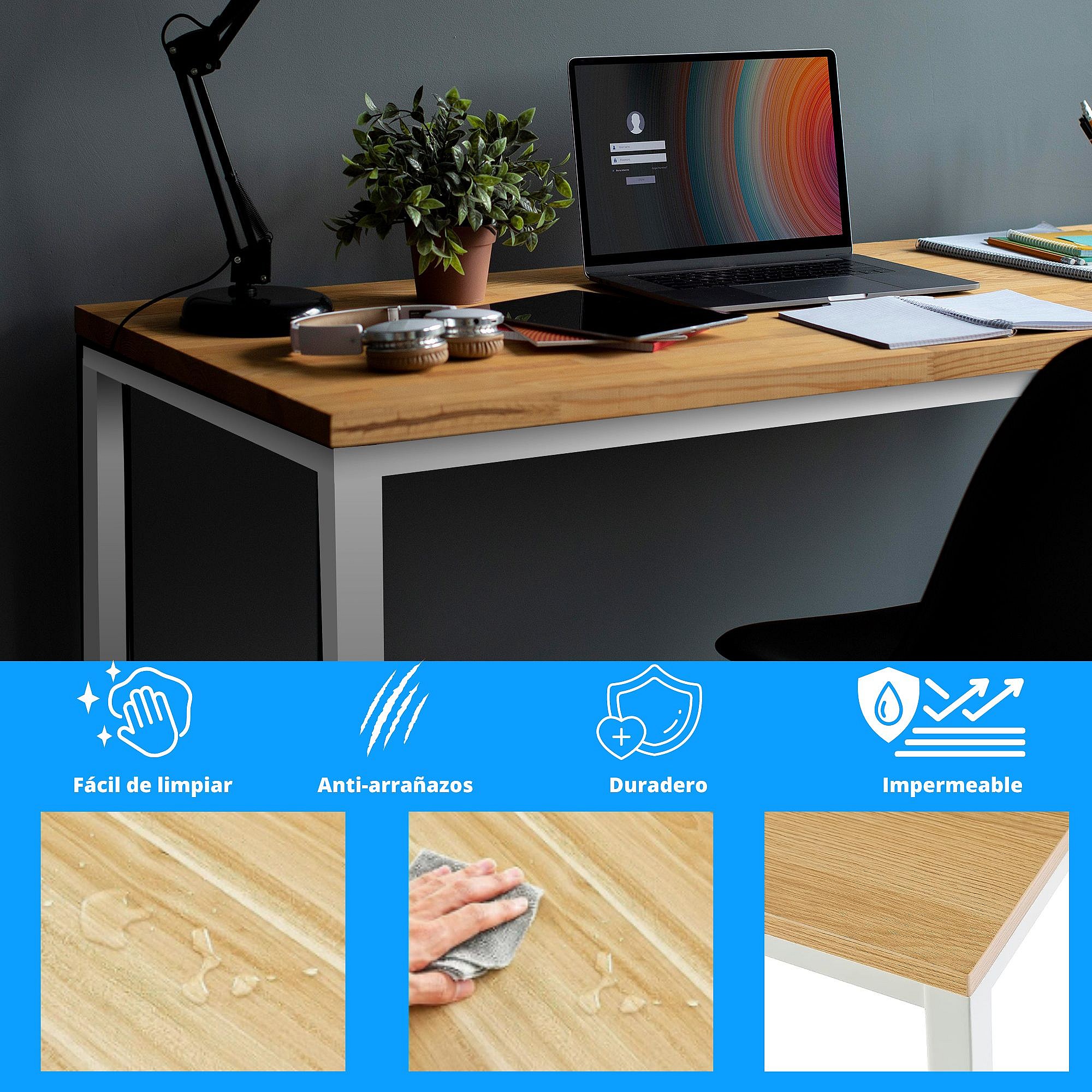 Meyvaser - Mesa de Escritorio 120 Cm de ancho con patas de Metal Blanco y tapa de madera 58x74x120 Cm