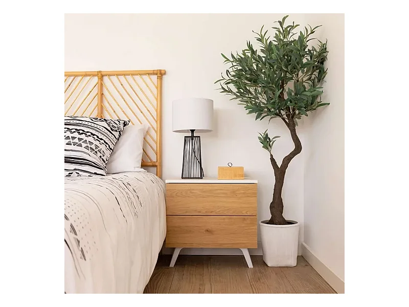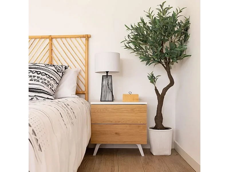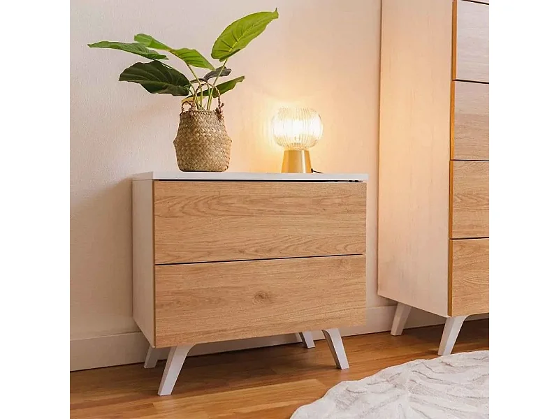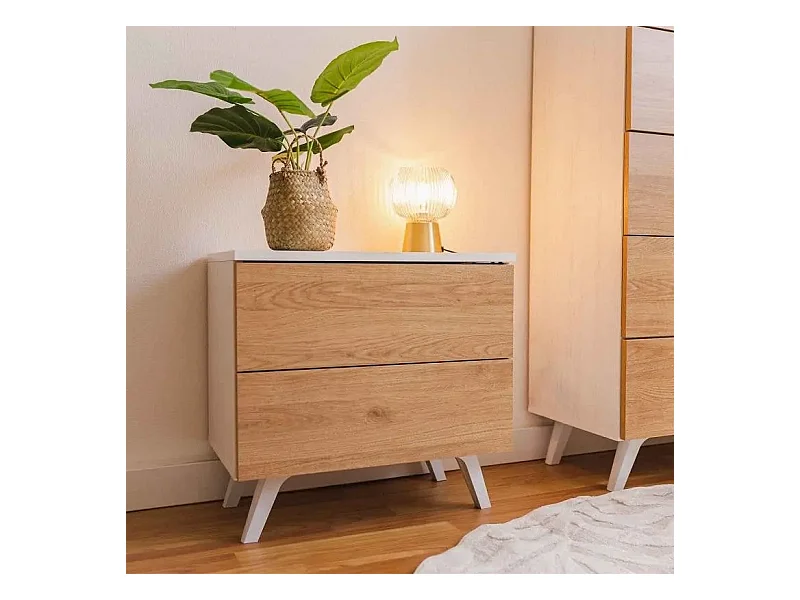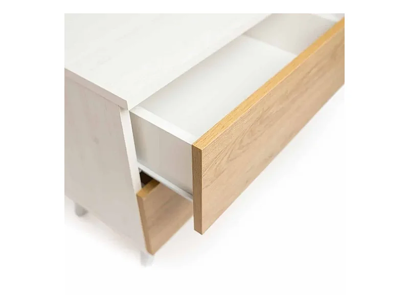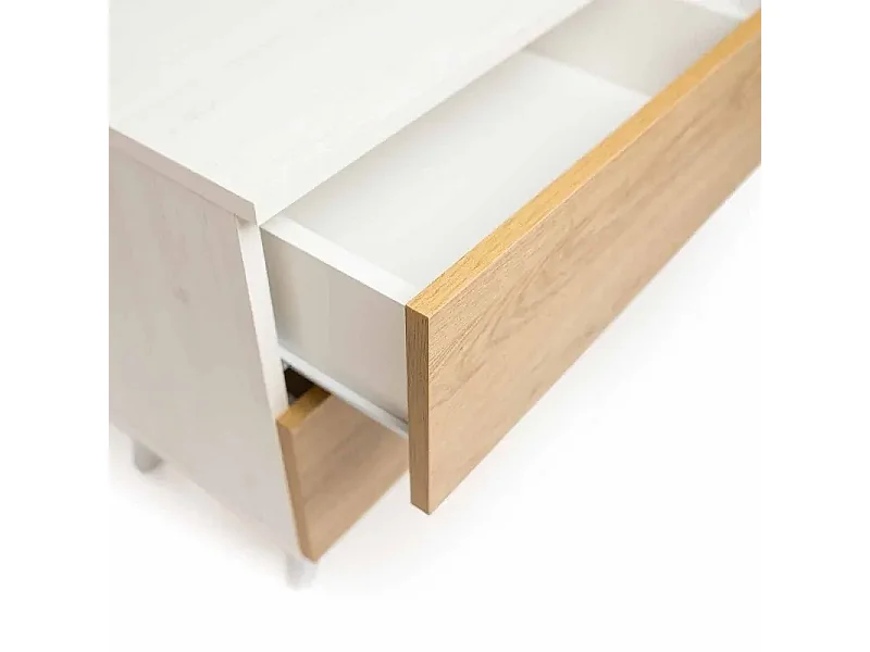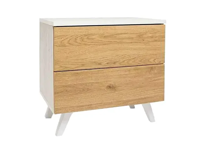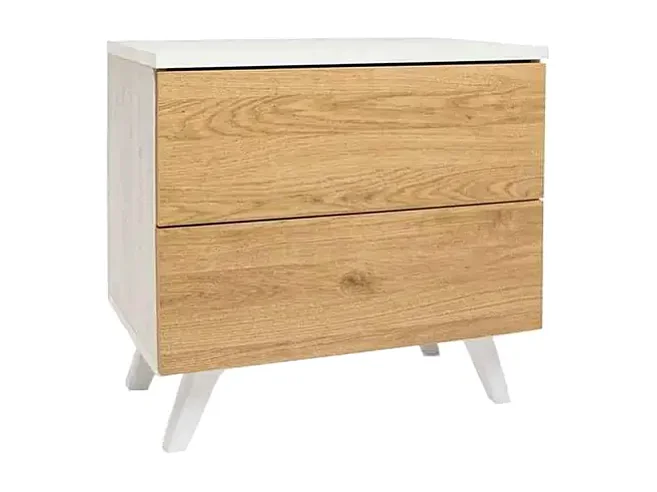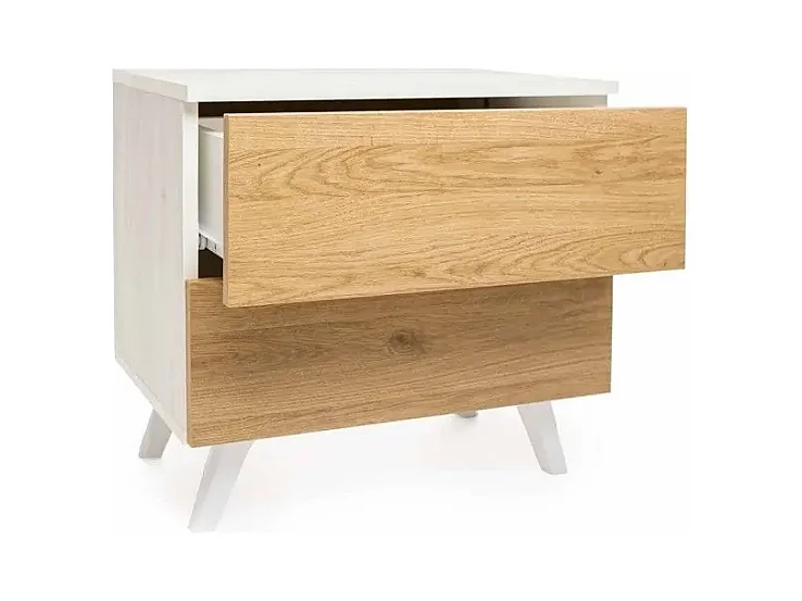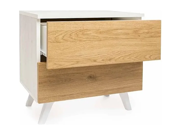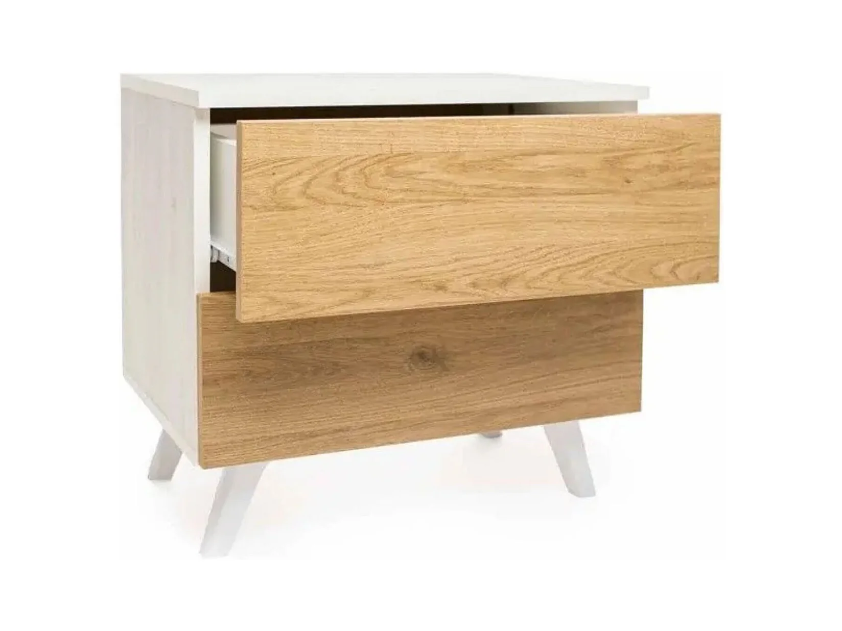 Meyvaser Mesita de noche 2 cajones Color blanco y Natural 52 cm (ancho) x 50 cm (alto) x 34,8 cm (fondo)