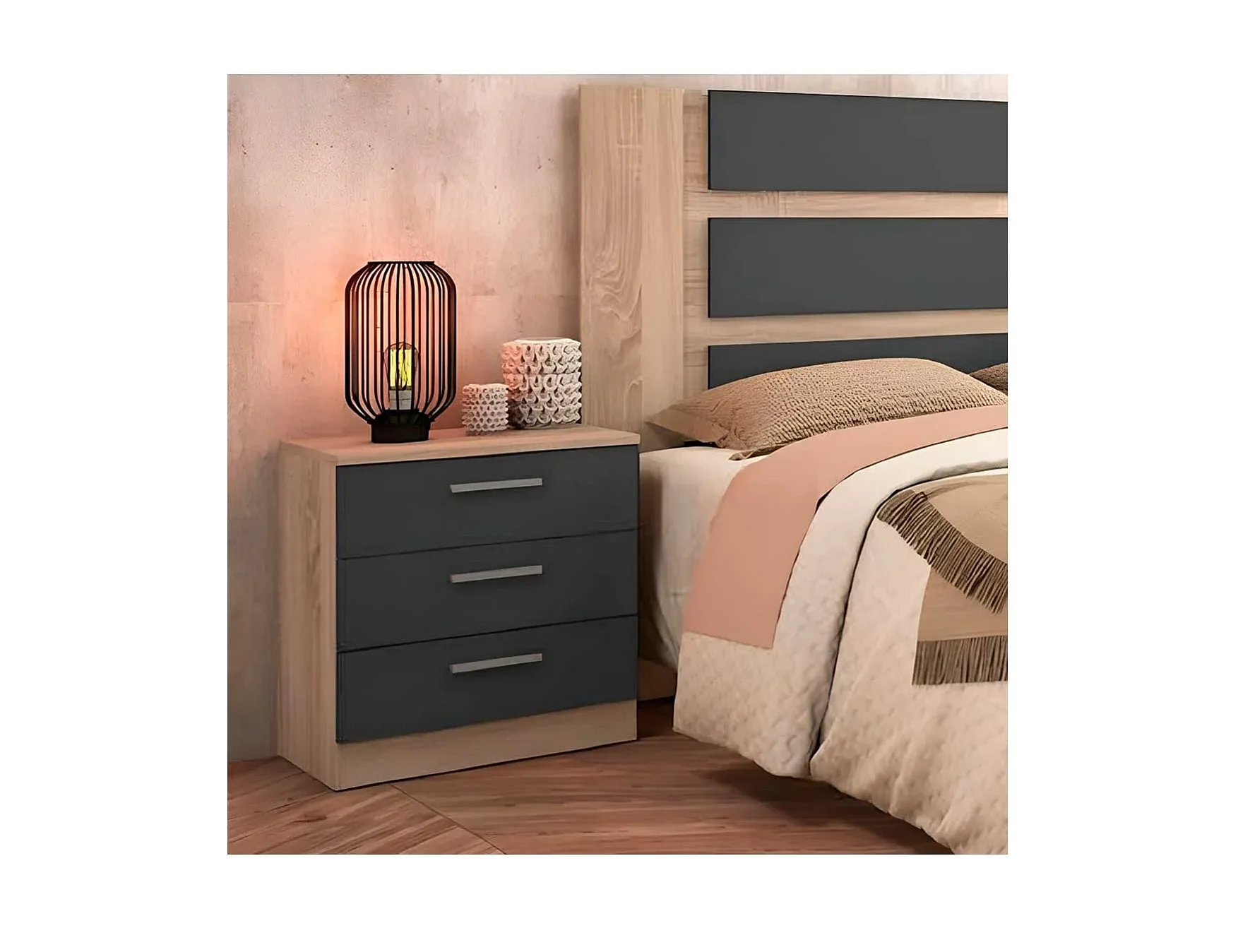 BricoExpo - Mesita de Noche, Mesilla de Dormitorio, Color Cambrian y Grafito, Medidas: 50 cm (La) x 34,6 cm (Fo) x 55 cm (Al)