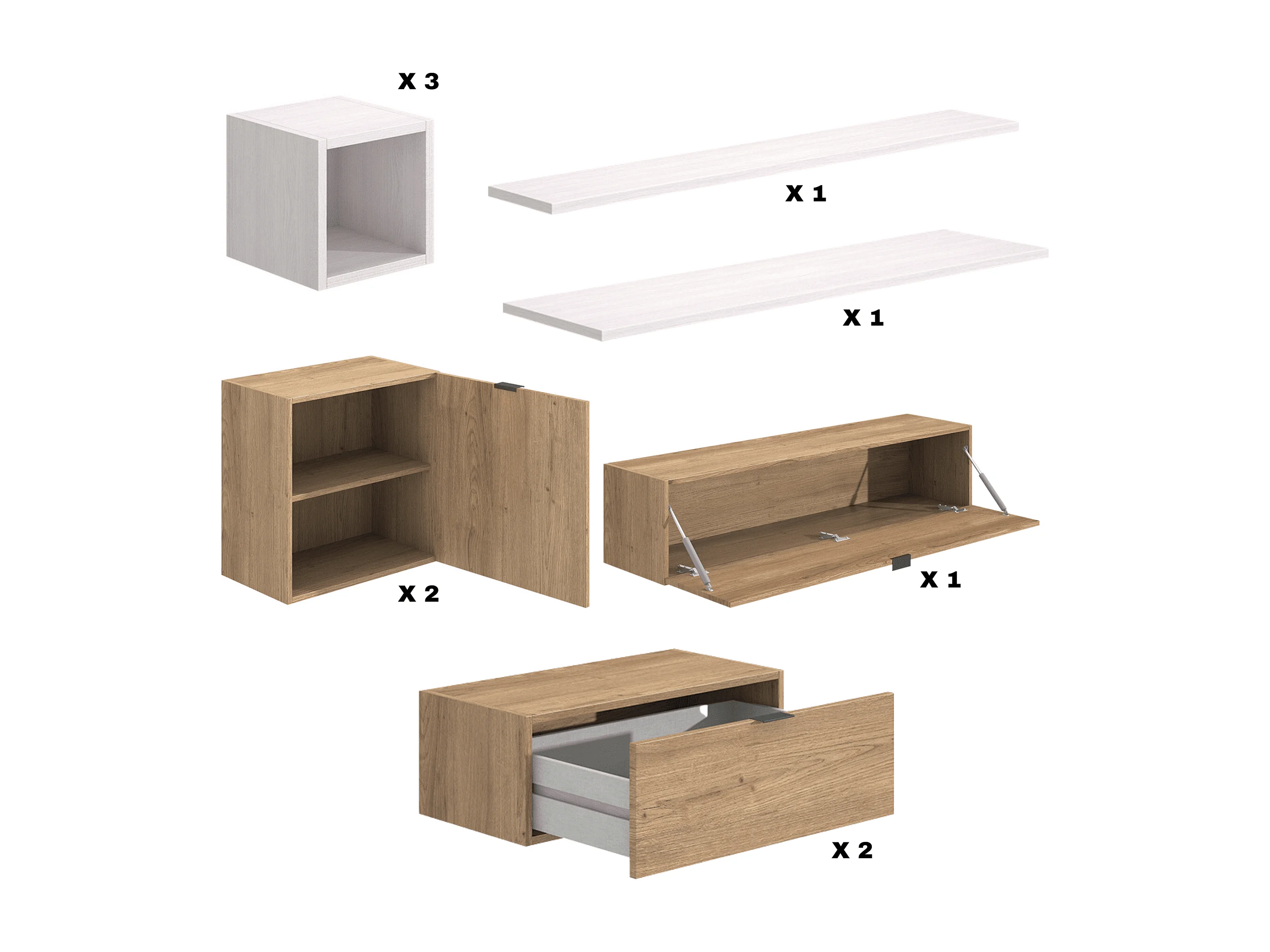 Meyvaser Mueble de salón y TV Conjunto muebles de salón apilable 270 Cm Ancho Color madera y blanco