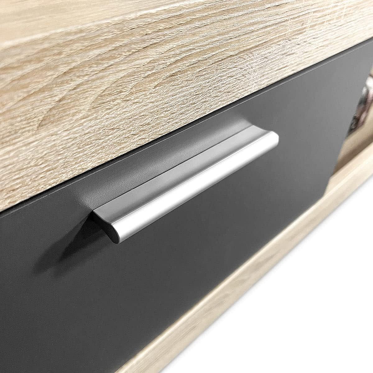 Meyvaser Mueble de salón y TV Moderno con Leds Color Cambria y Grafito Módulo de Comedor 259 Cm