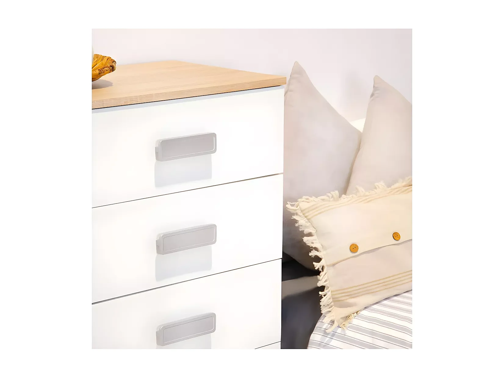 Meyvaser -Sinfonier 5 Cajones, Cómoda, Almacenaje Dormitorio, Acabado en Blanco y Nordico, Medidas: 60 cm (An) x 108,5 cm (Al) x 38 cm de (Fon)