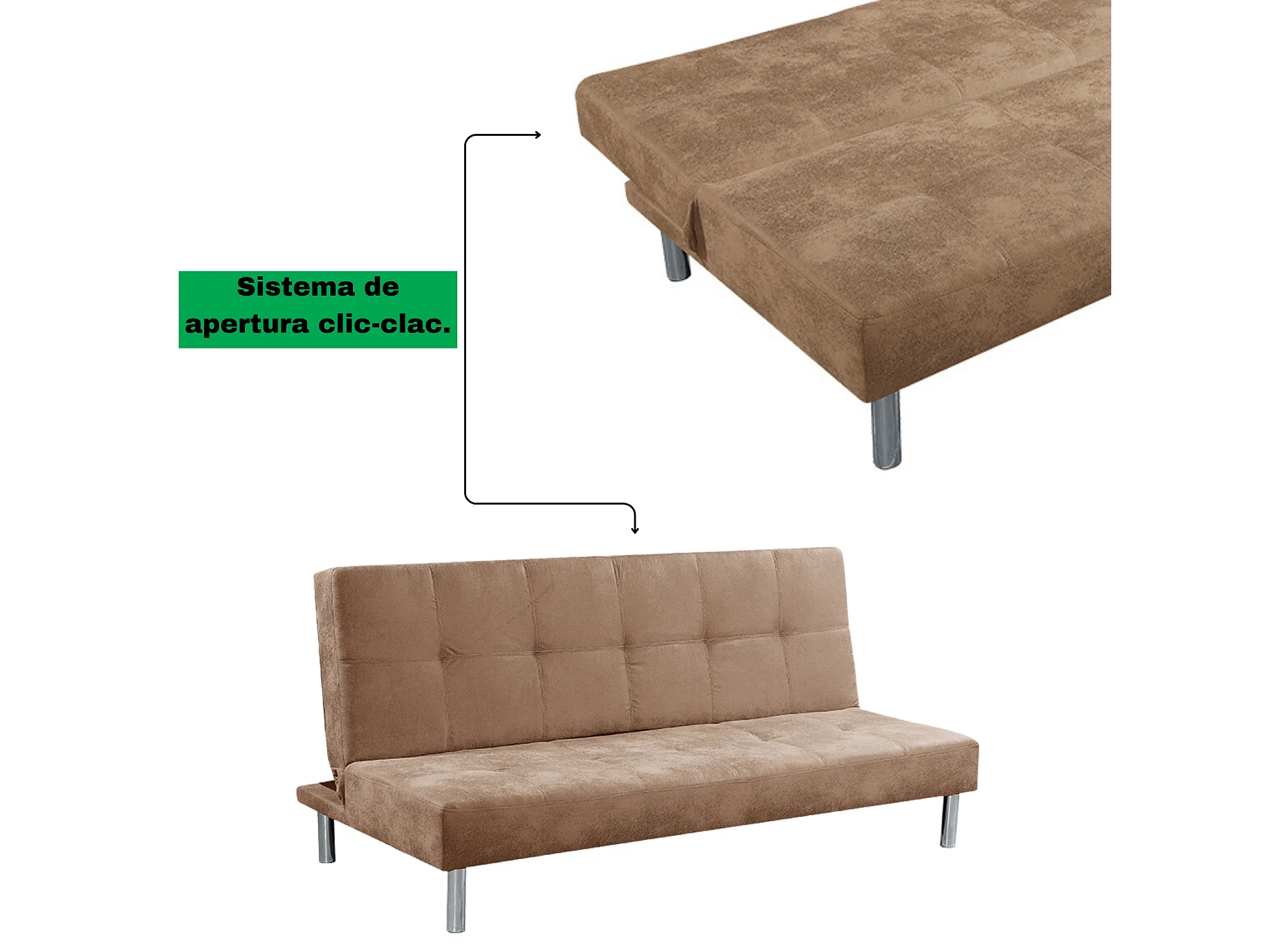 Meyvaser Sofá Cama de 2 Plazas - 187 x 85 x 78 cm - Apertura Clic-Clac - Máximo Relax, Confort y Resistencia