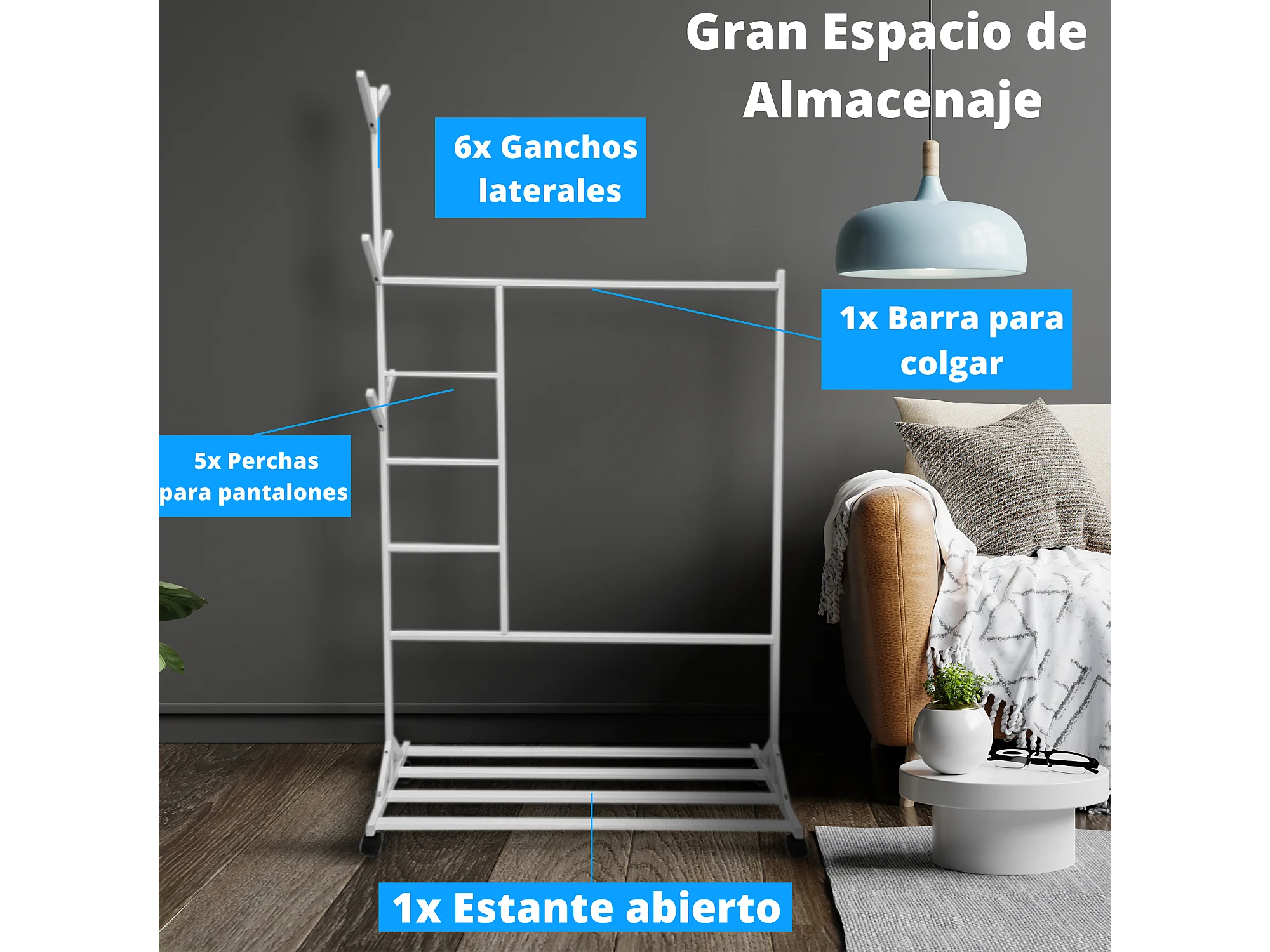 Perchero rodante armario doble con ruedas perchero 80,5x51x155cm