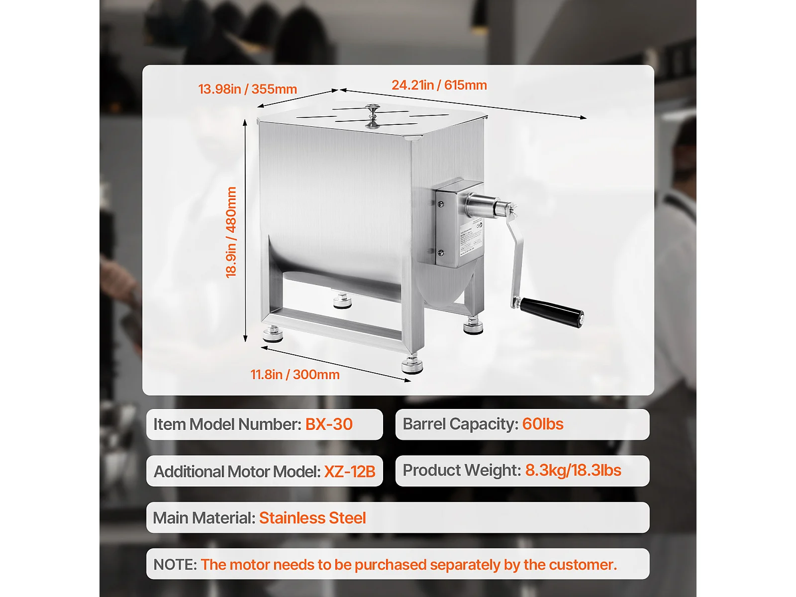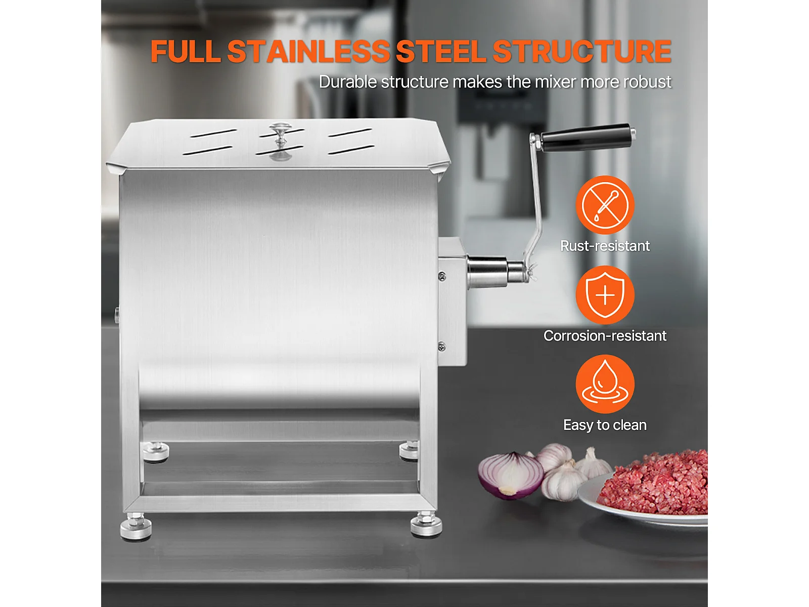 Mezclador de Carne Manual SucceBuy, 60 L para Carne Picada y Transformación, de Acero Inoxidable de Alta Calidad de Grado 201