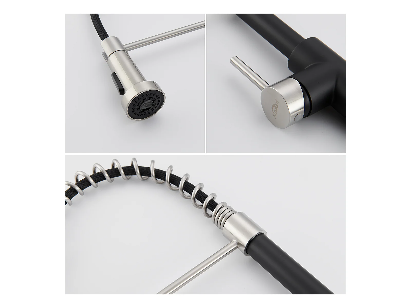 Mezclador de cocina AuraLum Max con ducha de mano Grifo de cocina de resorte, rotación 360° Grifo de fregadero 2 chorros, Agua fría/Caliente, Negro