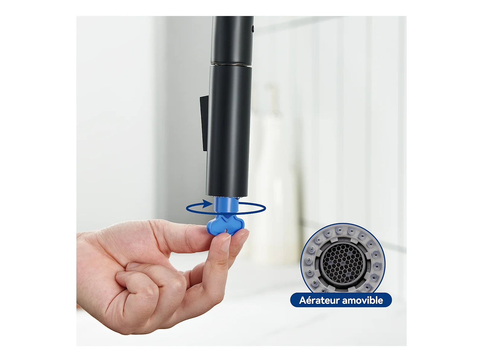 AuraLum Max grifo cocina mezclador cocina con ducha extraíble, mezclador fregadero cocina 2 modos jets giratorio a 360 grados Negro,Modelo UE