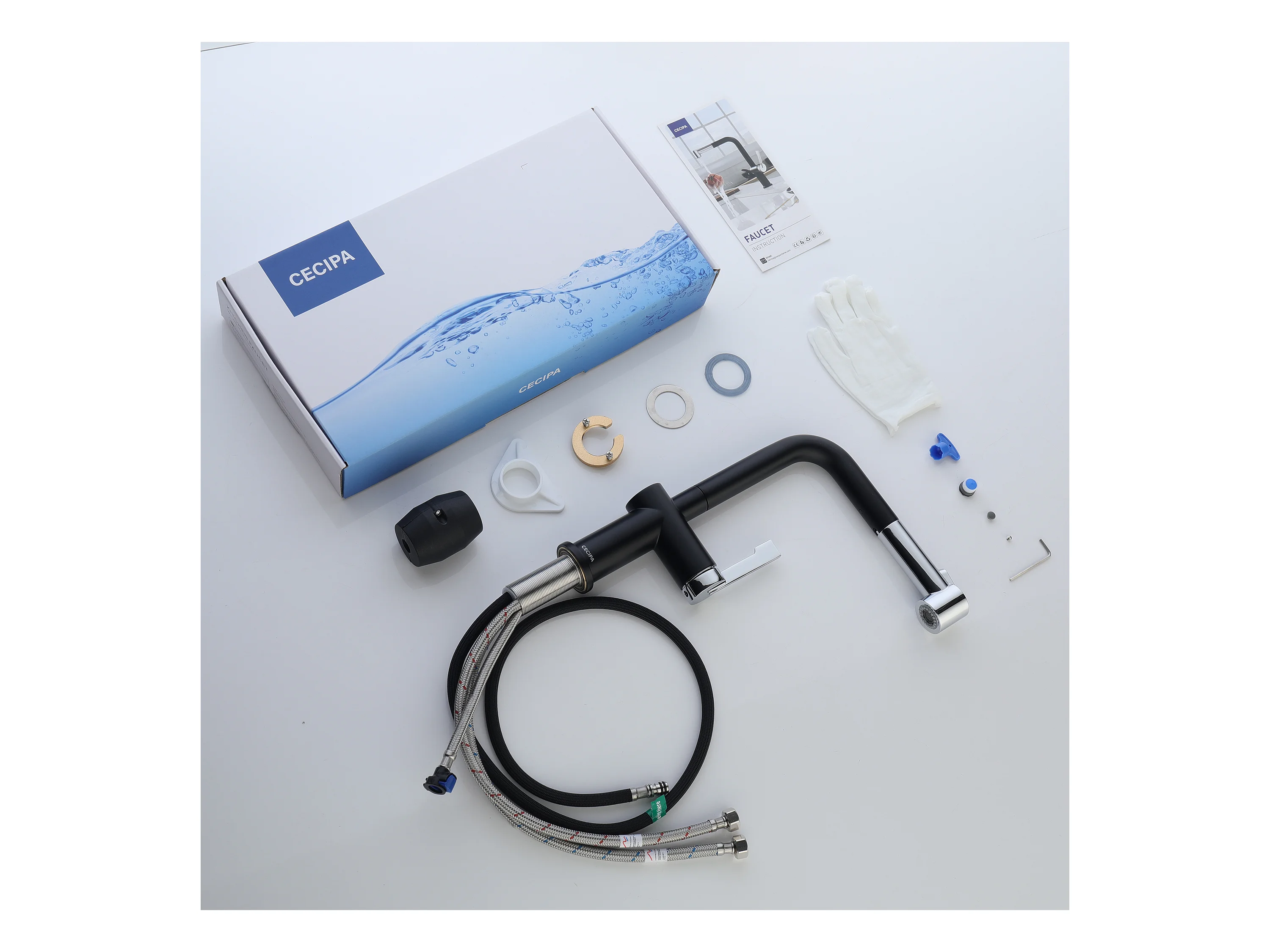 Mezclador de cocina extraíble Cecipa max, grifo de cocina con 2 modos de salida de agua, grifo de fregadero negro + galvánico, modelo UE, 2 uds.