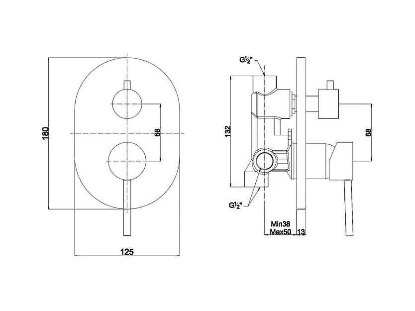 Mezclador de ducha empotrado "Theris" con desviador en latón negro con acabado mate
