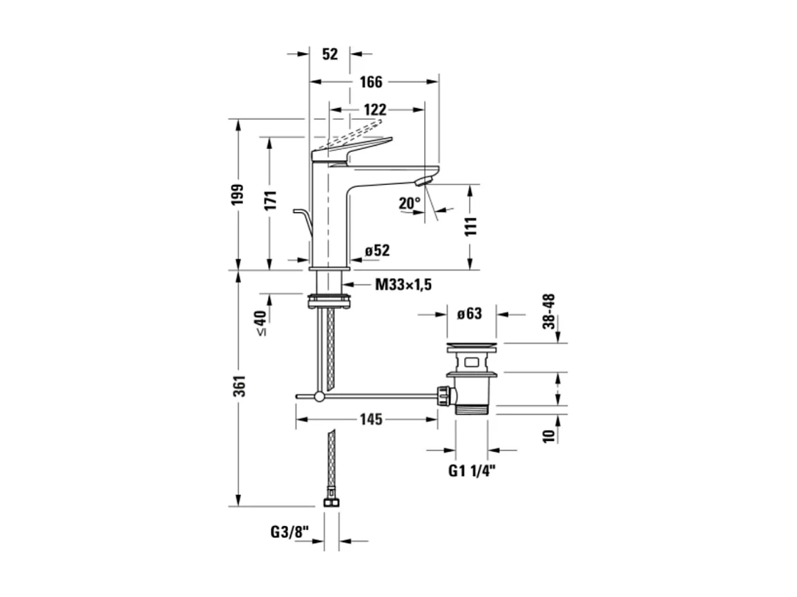 Mezclador de lavabo DUVARIT Wave M con desagüe de bronce cepillado