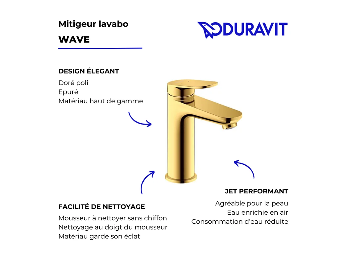 Mezclador de lavabo DUVARIT Wave M sin desagüe oro pulido