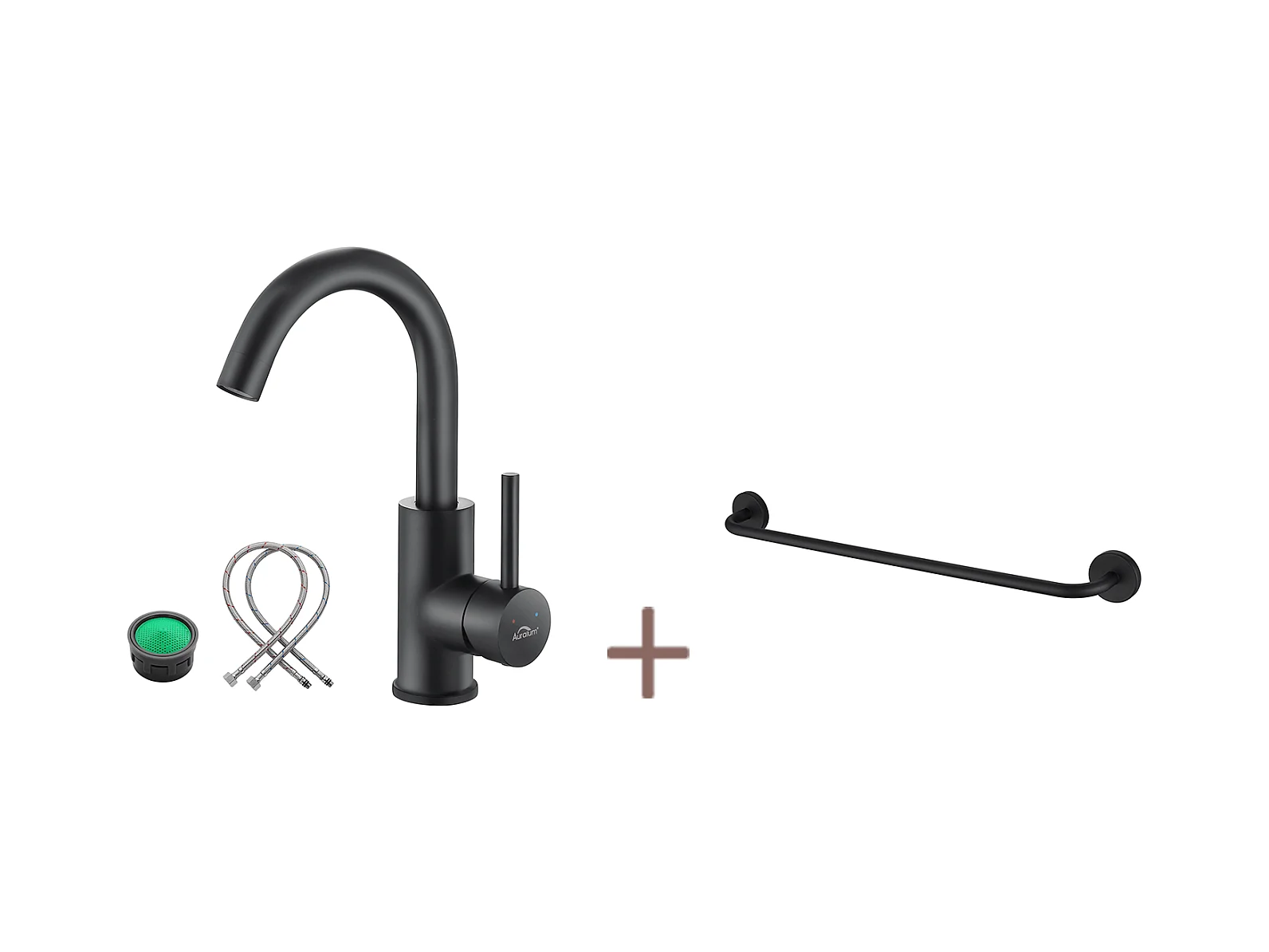 Auralum max Grifo LavAbo Negro con Mampo Demotable, Rotación 360°+Toallero de Baño,Autoadhesivo/Perforación,60CM,en INOX 304