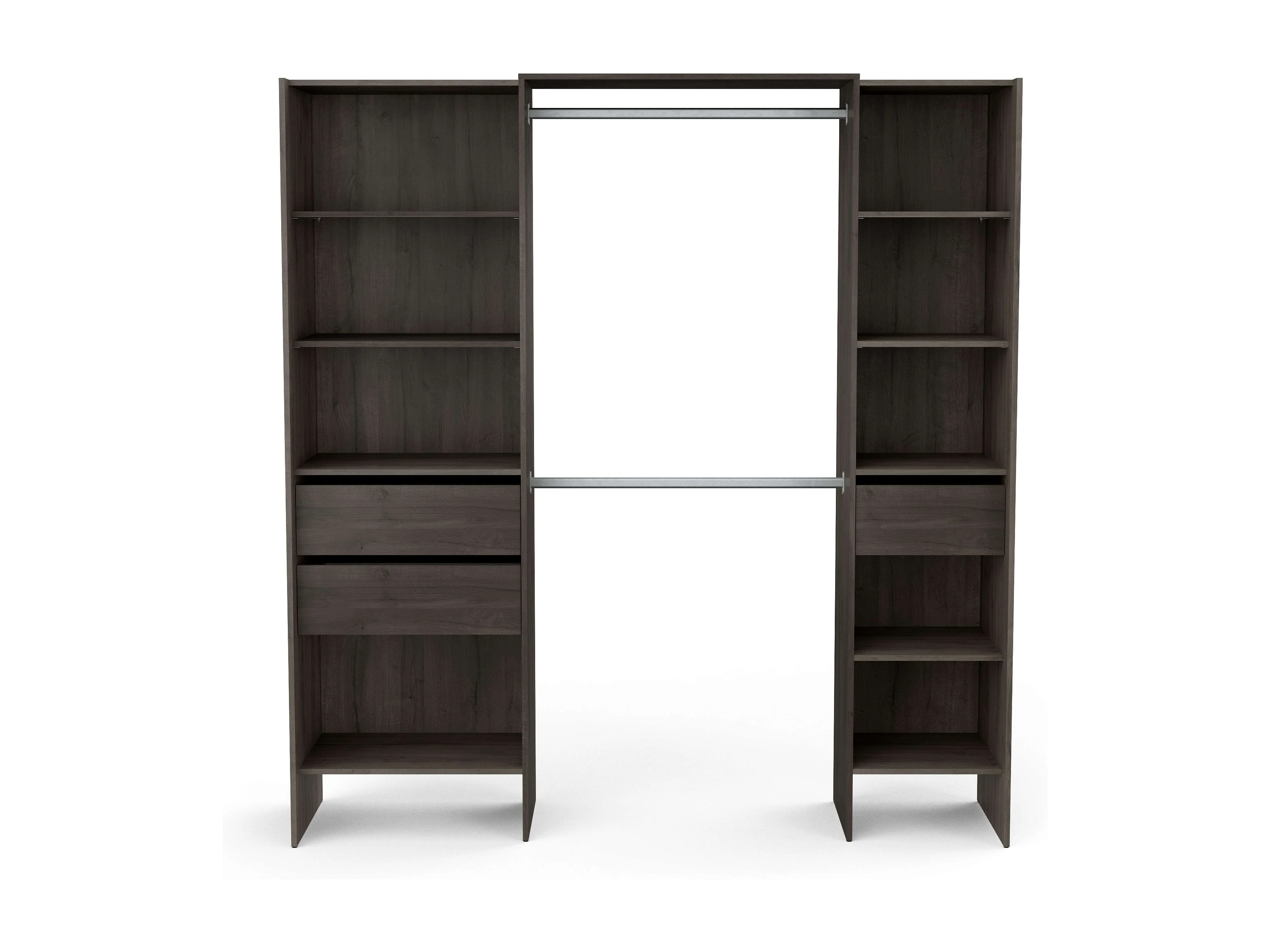 Armario 2 barras colgadoras 4 estantes 2 cajones 205x185x44 cm