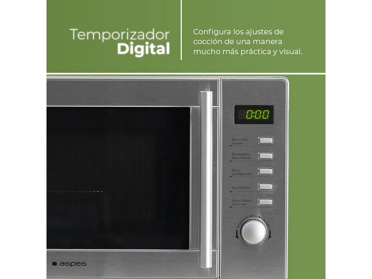 Microondas Aspes AMW2700DGX 1000W 20L con grill 8 programas inox