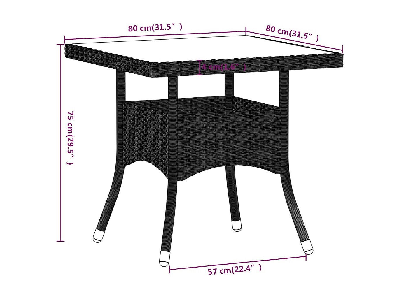 Mila Set comedor jardín 5 pzas ratán sintético vidrio templado gris