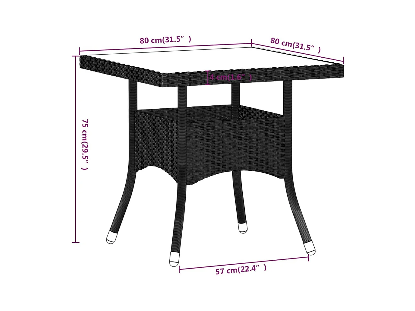 Roan Set comedor jardín 5 pzas ratán sintético vidrio templado negro