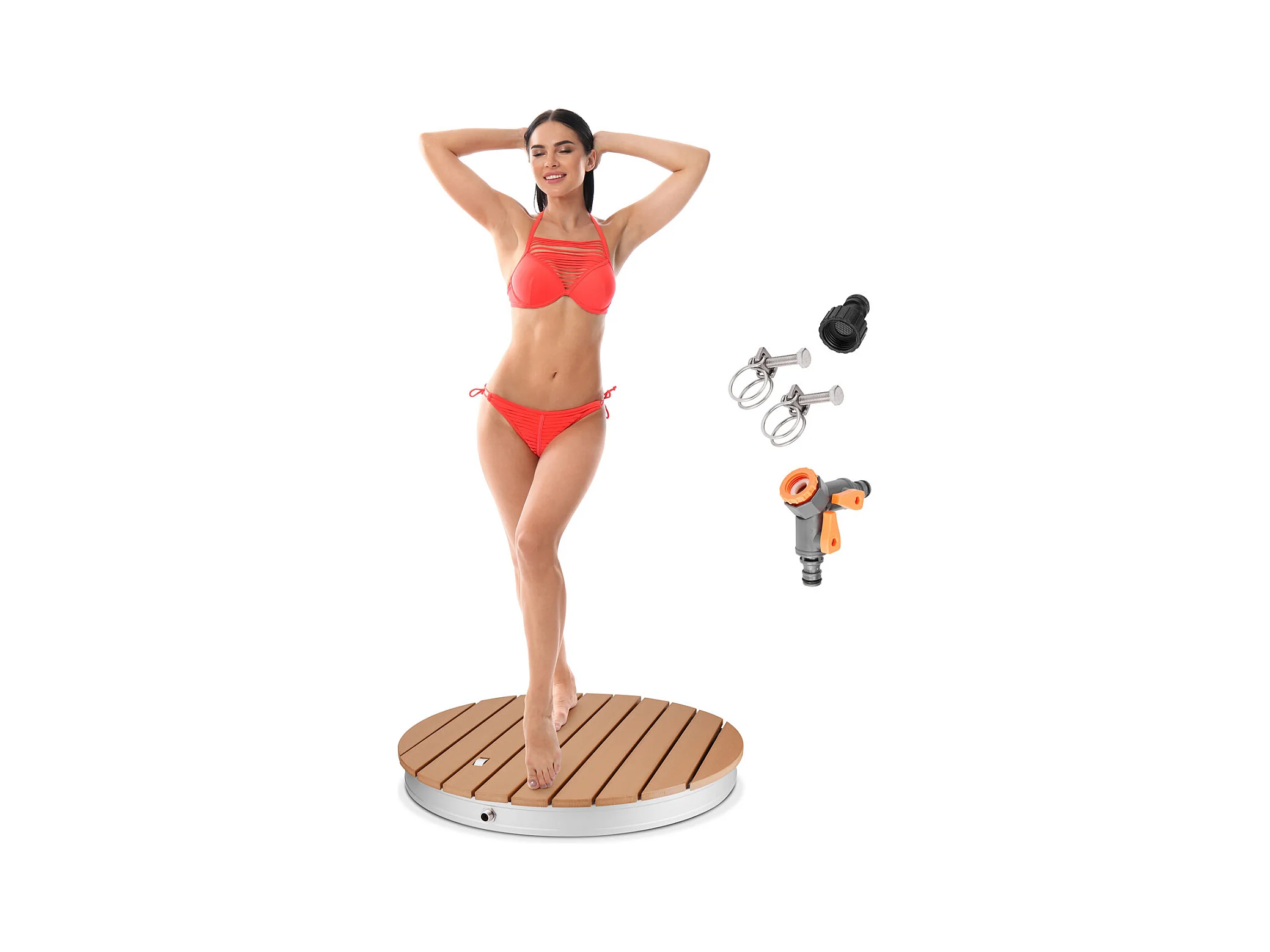 Mitra - Ducha de jardín, ducha de suelo con rueda de pie Ø 70 cm