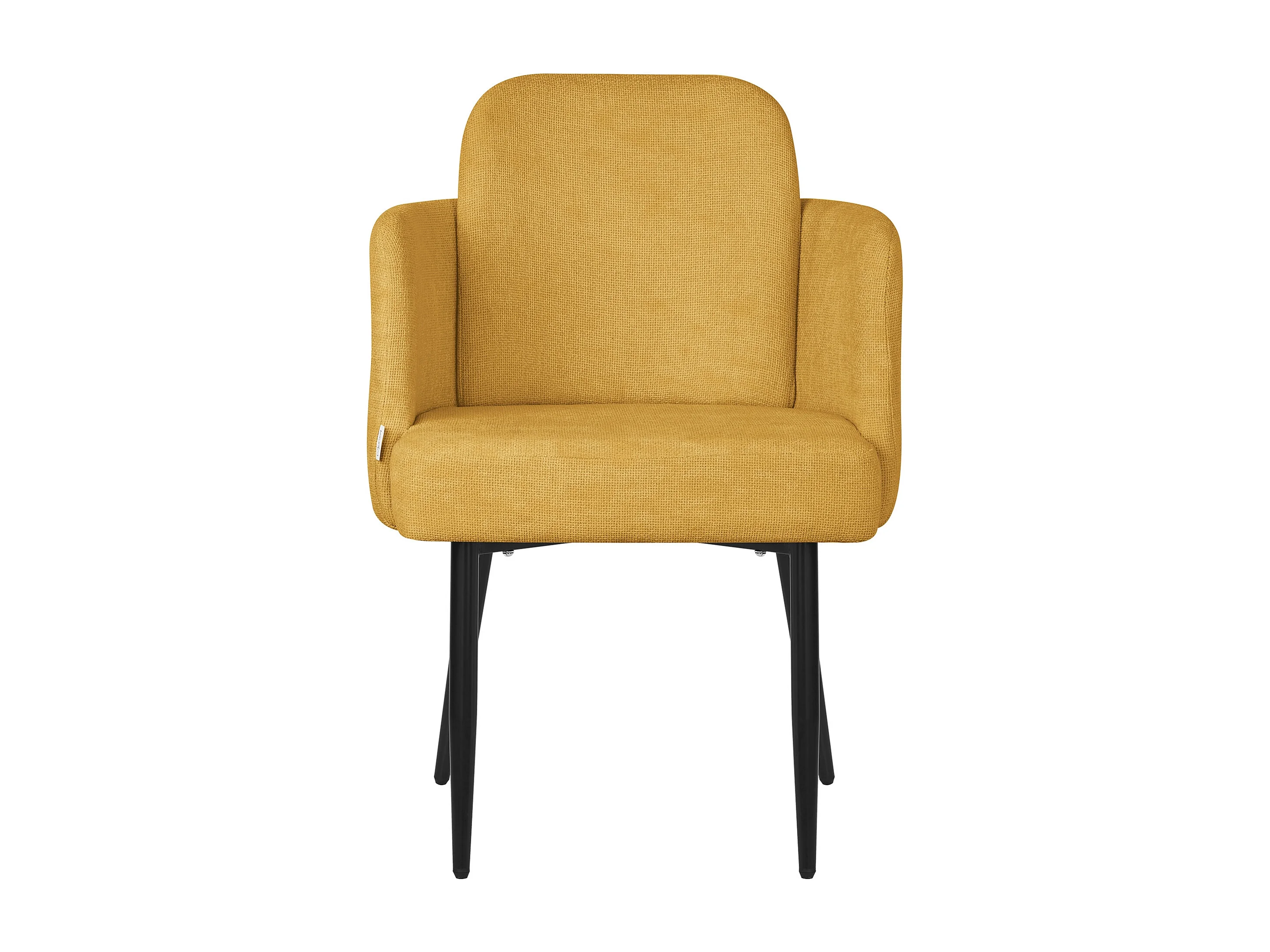 ML-Design 2x Sillas de comedor con funda de tela mostaza asientos sofá de salón con respaldo y reposabrazos de ratán mueble tapizado y patas de metal