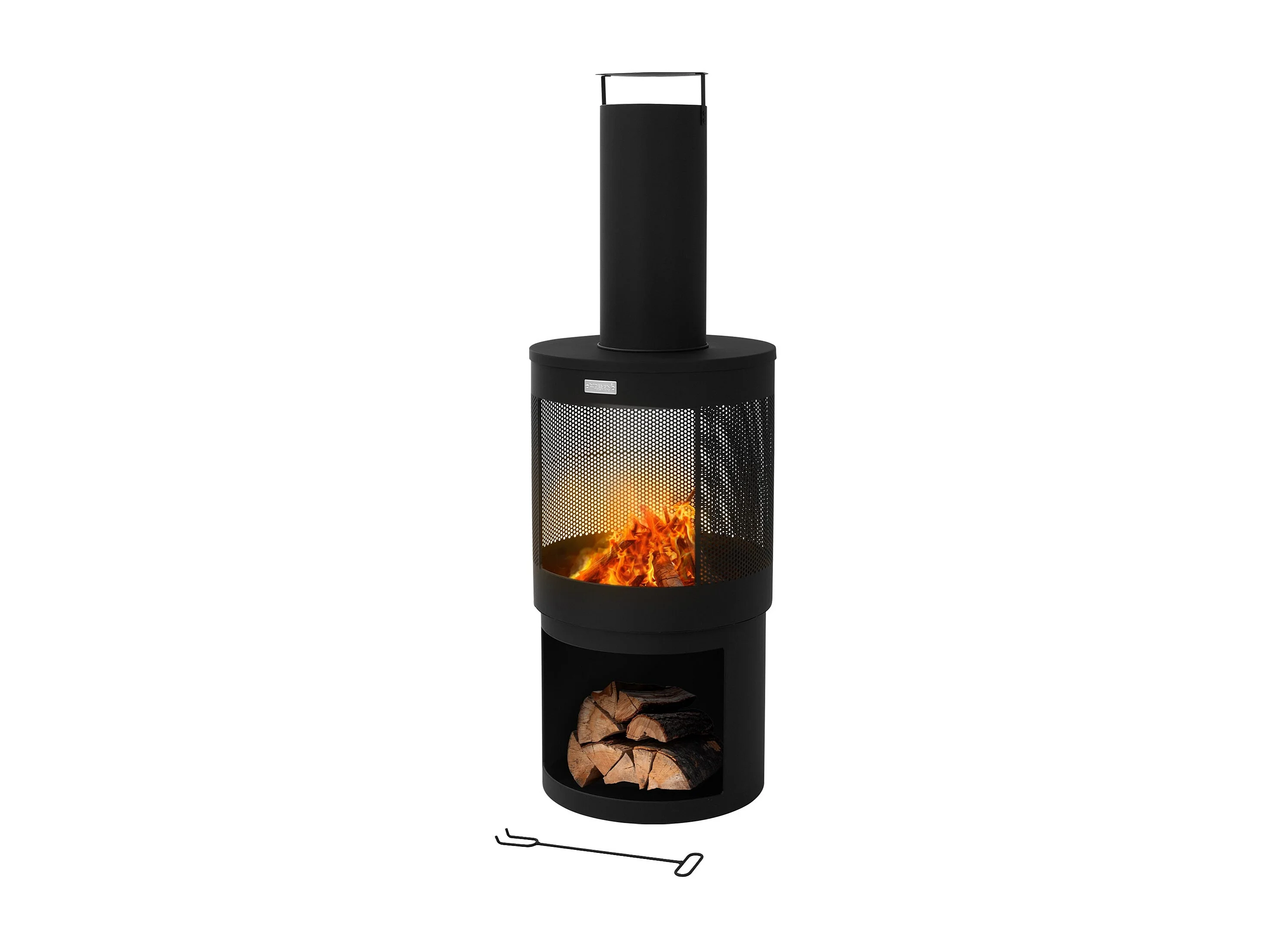 ML-Design Chimenea para jardín redonda 131 x Ø45 cm de acero negro, estufa para exterior con atizador, techo desmontable y compartimento para leña