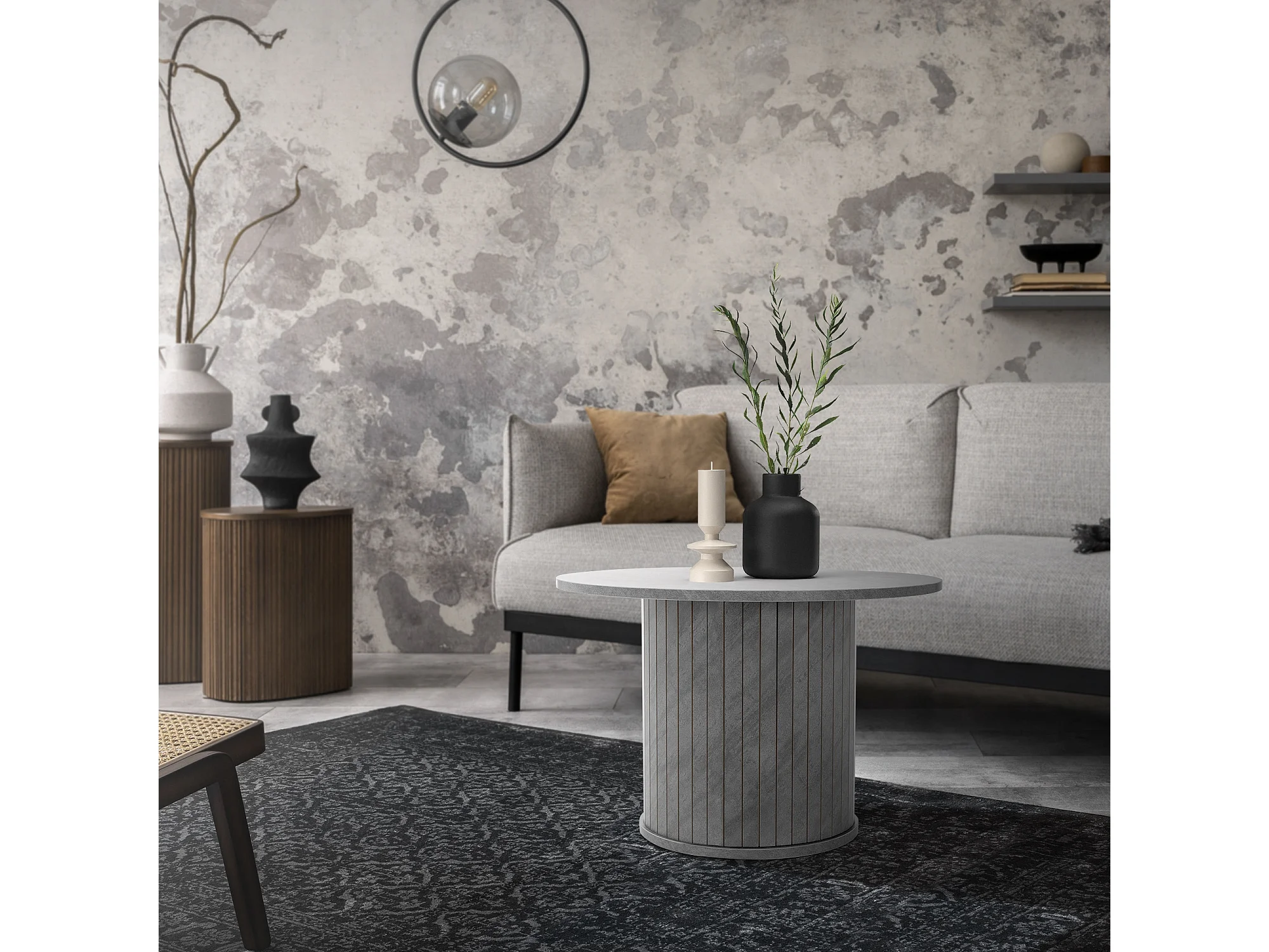 ML-Design Mesa de centro redonda con tablero sobresaliente Ø60x40cm gris con aspecto de hormigón mesita de café mueble auxiliar de salón