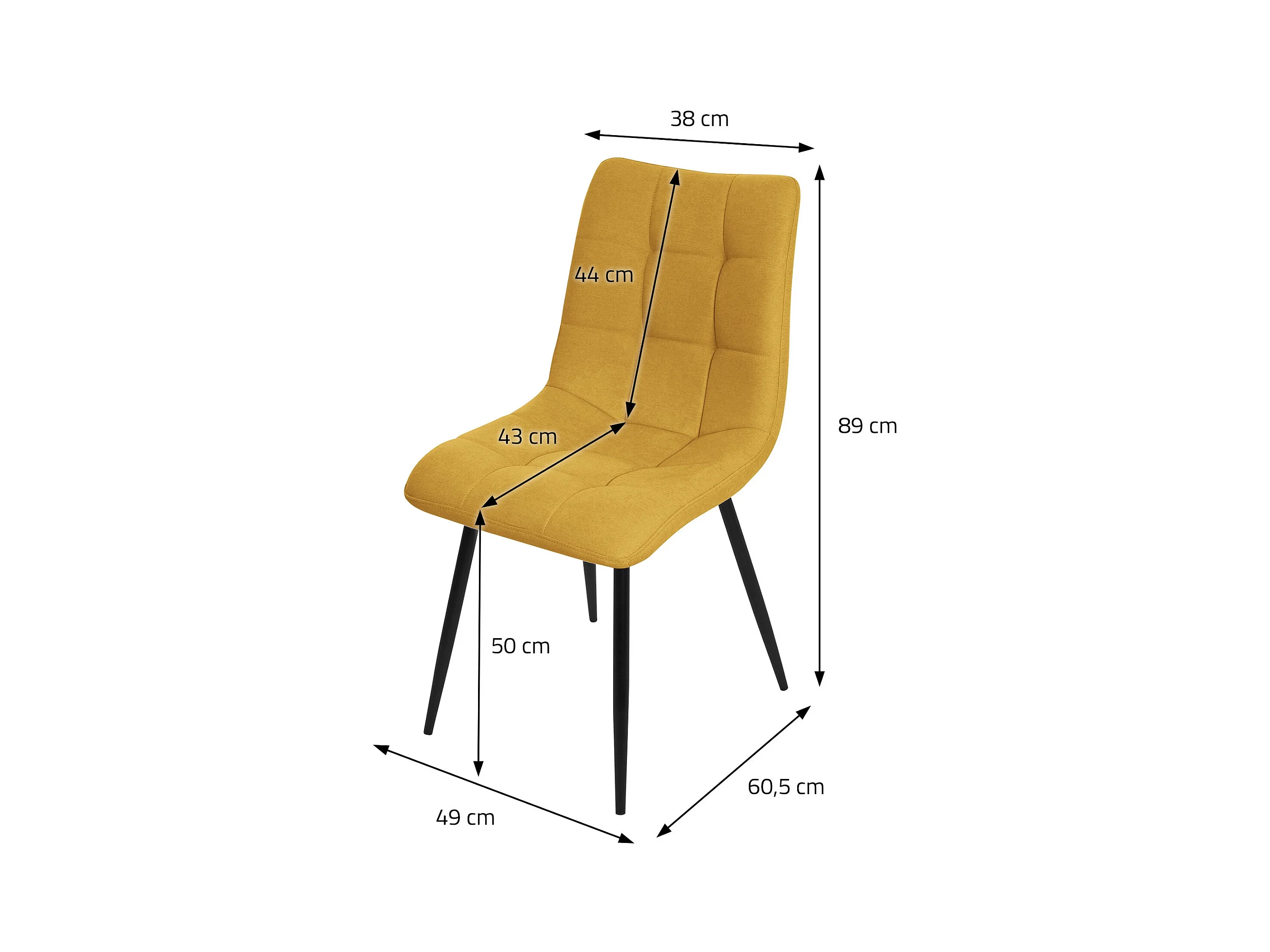 ML-Design Silla de comedor 4 piezas amarillo mostaza, Silla de salón con tapicería de tela y patas de metal negro