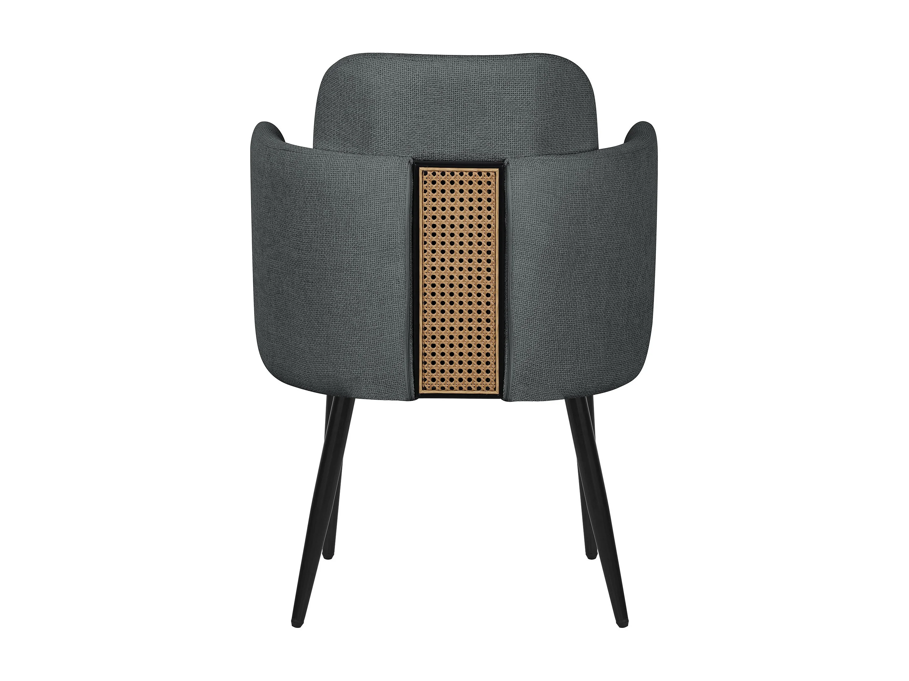 ML-Design Silla de comedor con funda de tela antracita asiento de salón con respaldo y reposabrazos de ratán mueble tapizado con patas de metal
