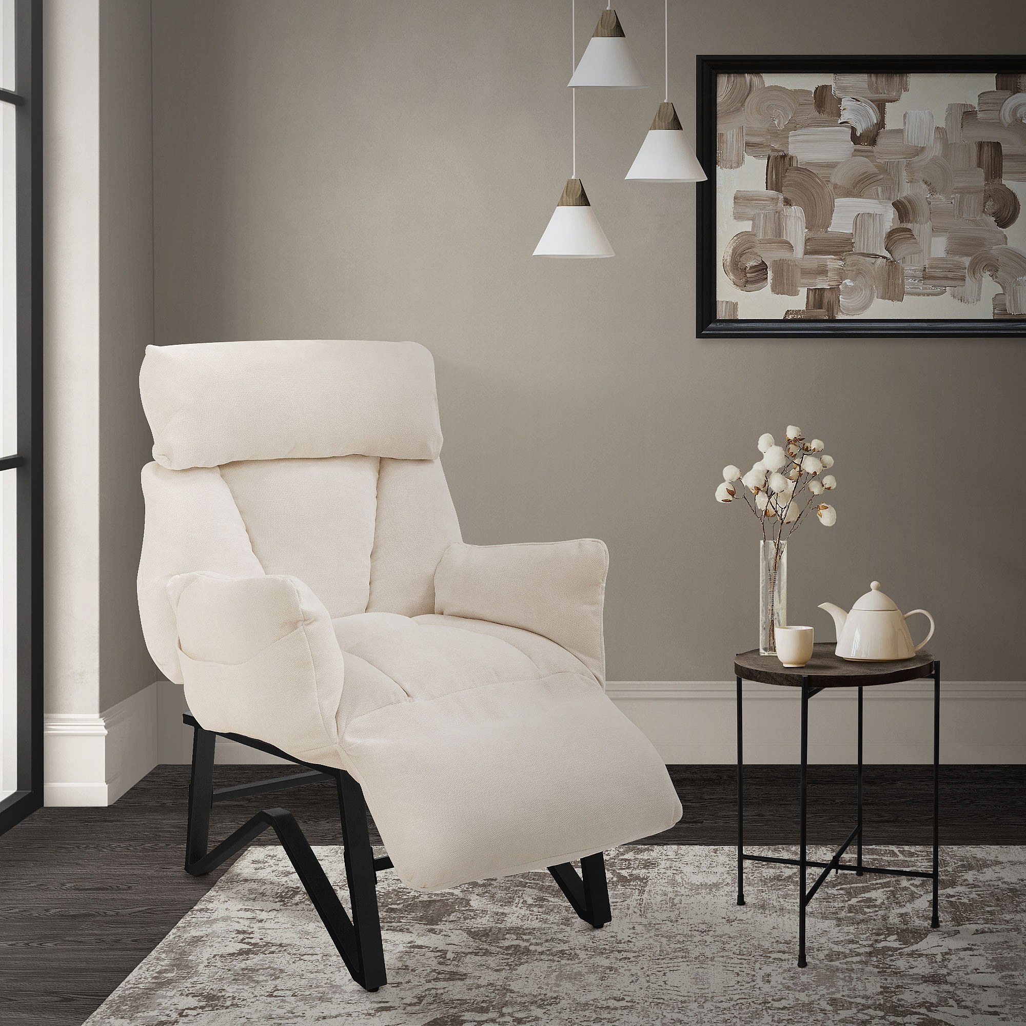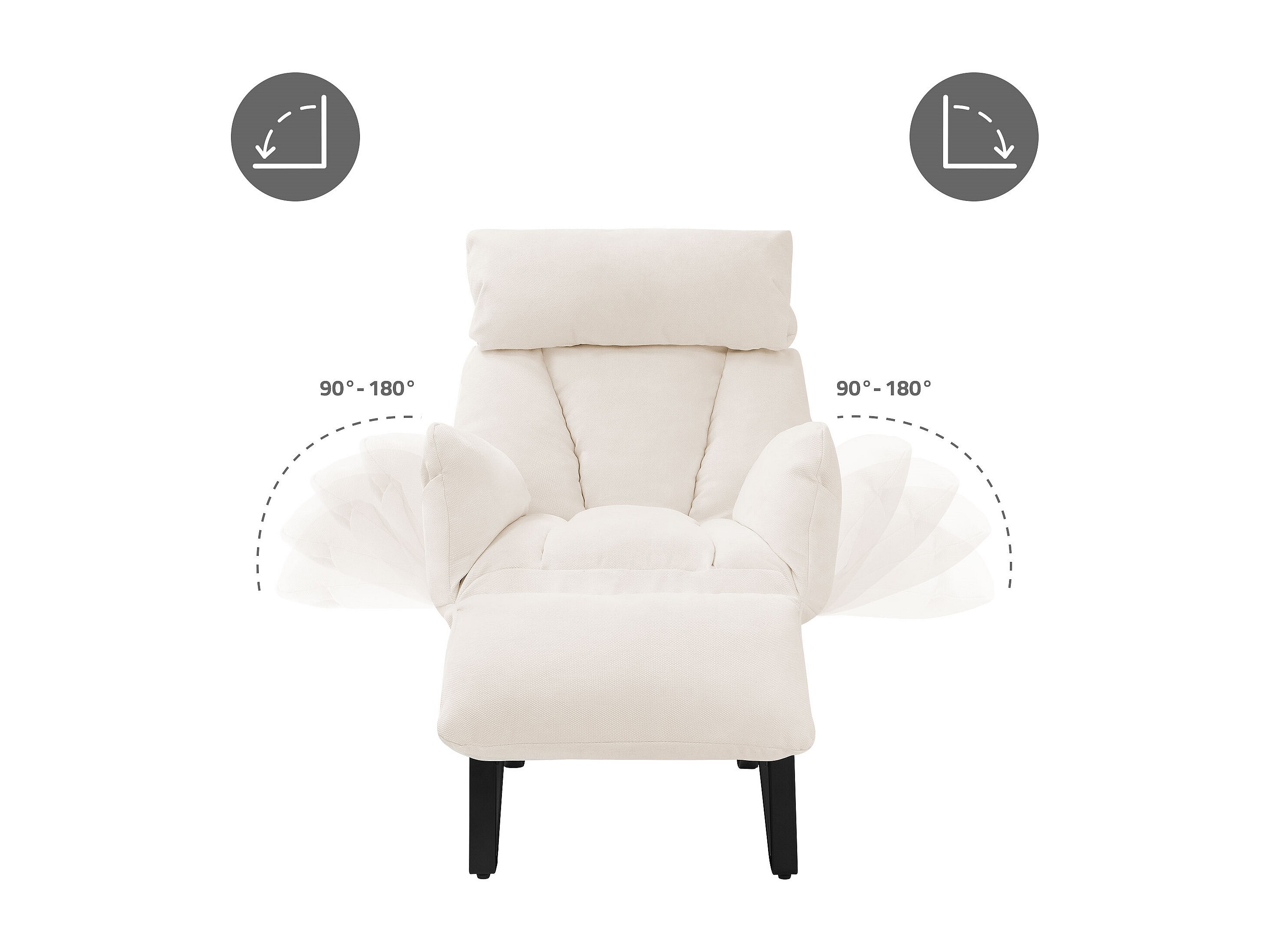 ML-Design Sillón de relax reclinable beige asiento de salón tapizado con funda de lino butaca individual ajustable con reposapíes y reposabrazos