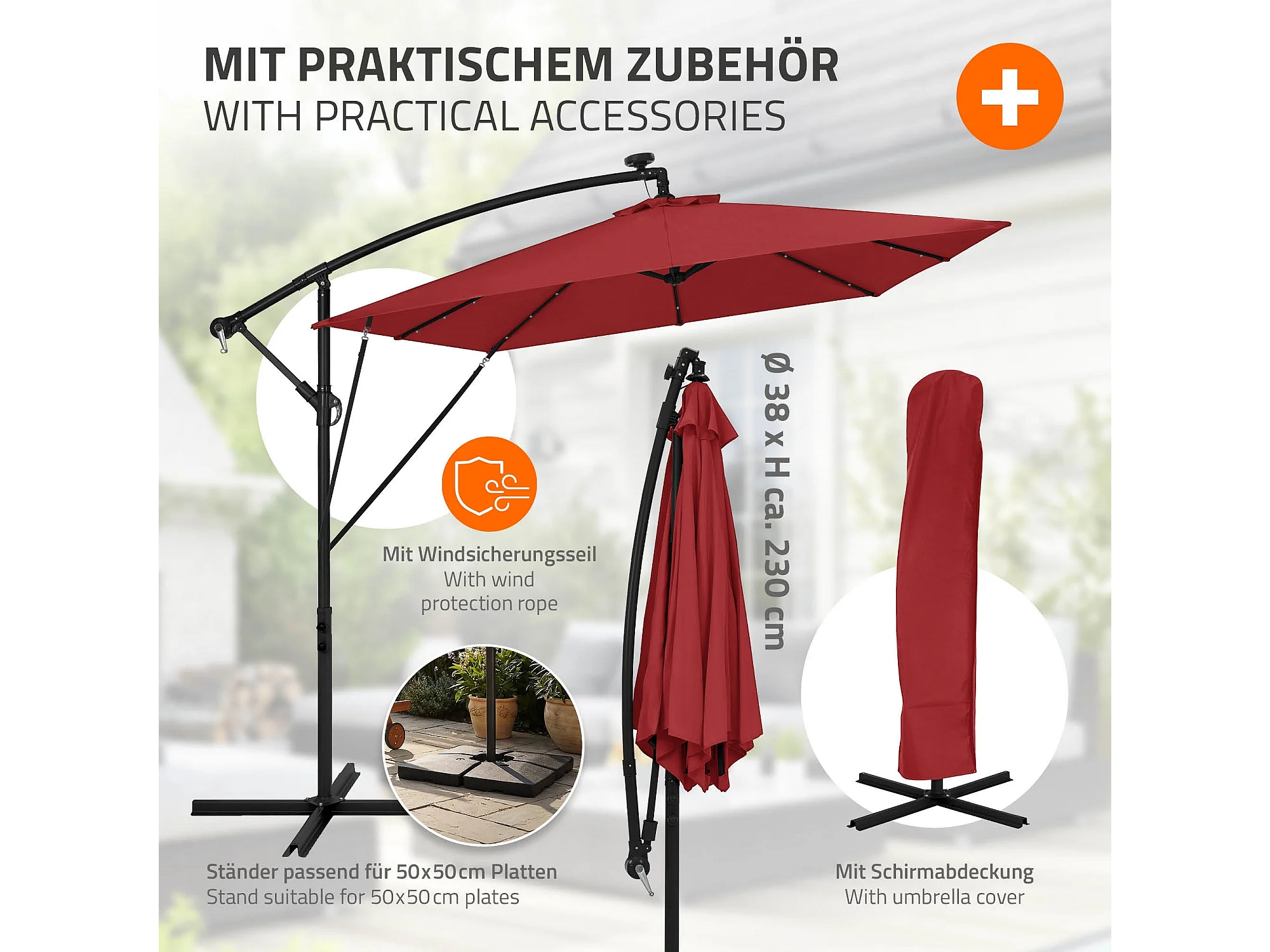 ML-Design Sombrilla de jardín con LED solar Ø330cm de aluminio rojo parasol volafiza de terraza con soporte, giratoria 360° e inclinable