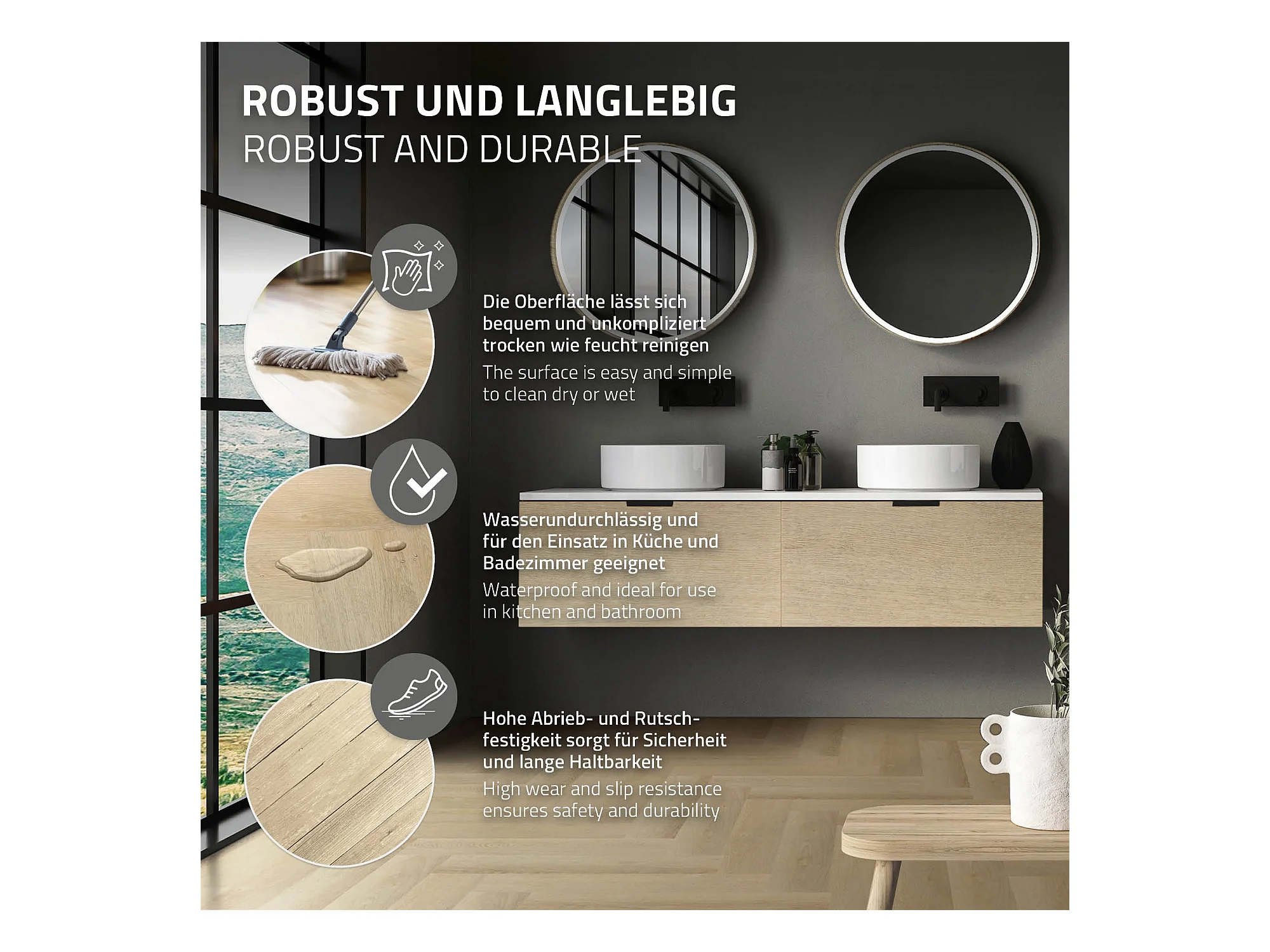 ML-Design Suelo vinílico de PVC 1.56m² marrón roble natural 20x planchas sistema de click 61x12,8cm láminas grosor 4,2mm efecto madera impermeabl