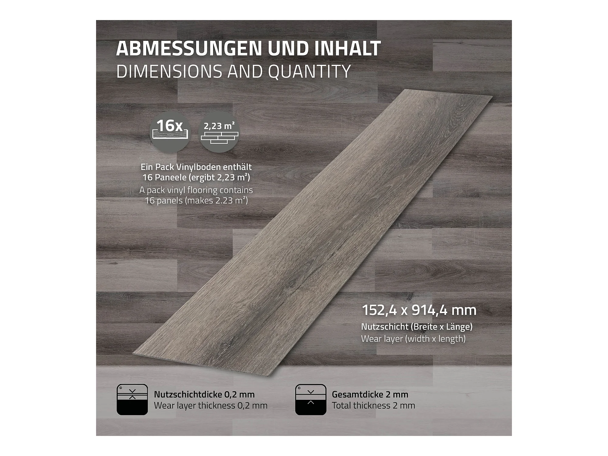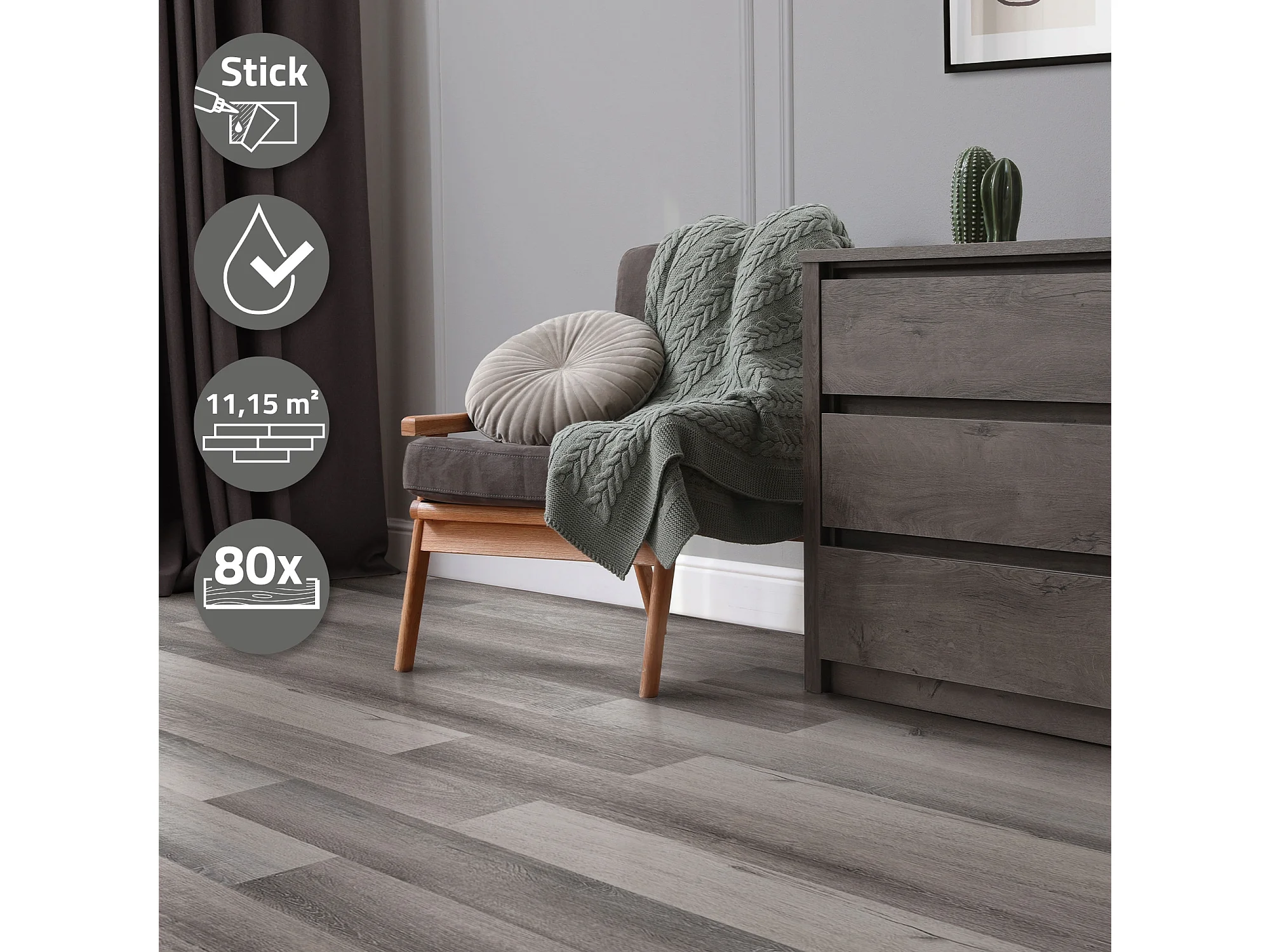 ML-Design Suelo vinílico de PVC 11,15 m² color pino gris 80x planchas autoadhesivas 91,5x15,3cm láminas grosor 2 mm efecto madera antideslizante