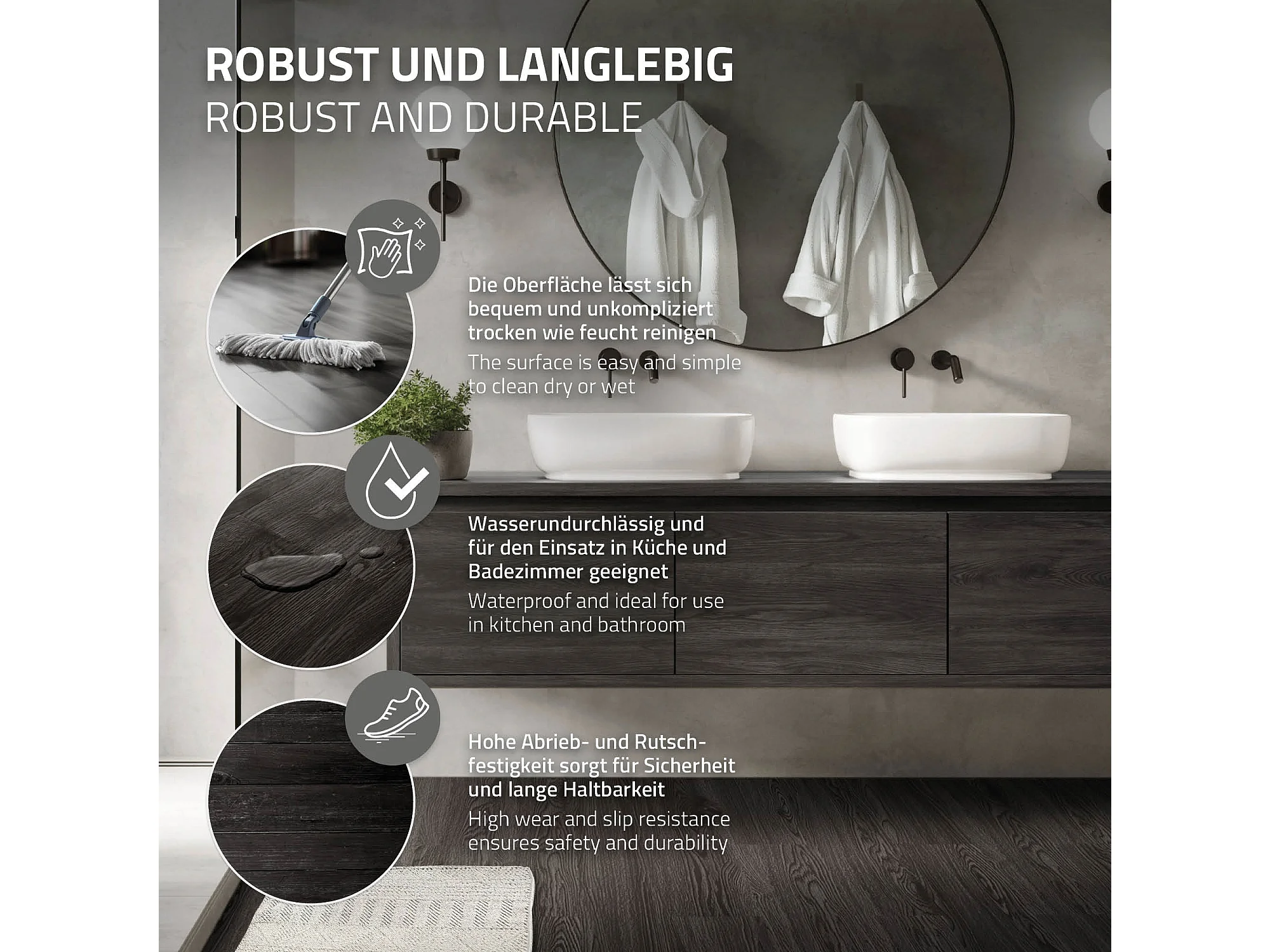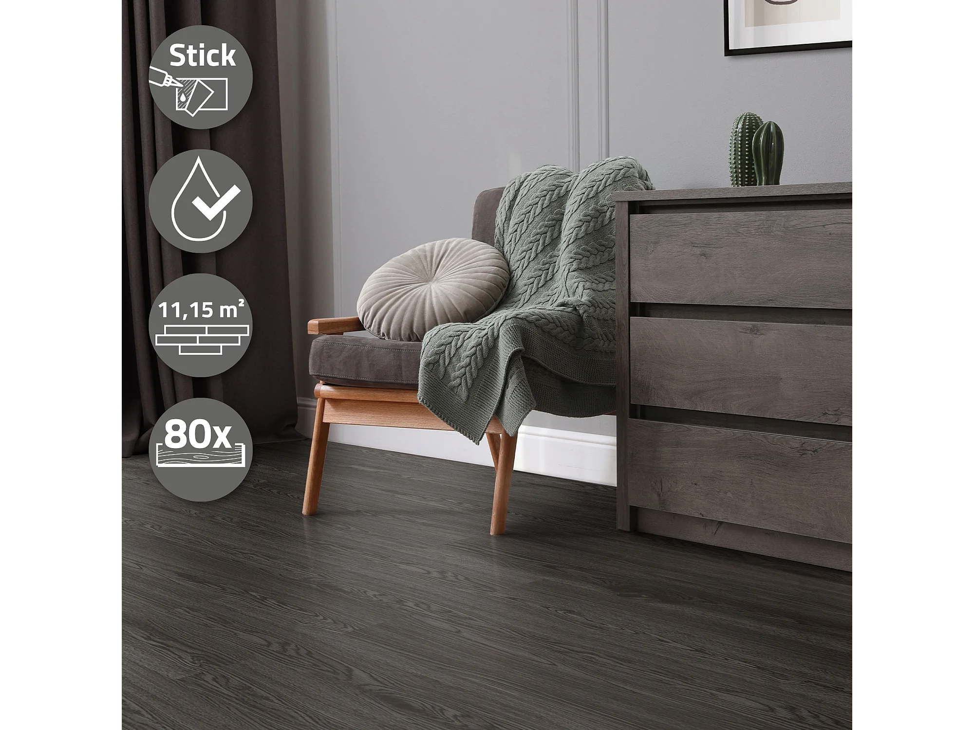 ML-Design Suelo vinílico de PVC 11,15m² color roble gris oscuro planchas sistema autoadhesivo 91,5x15,3cm láminas grosor 2 mm efecto madera