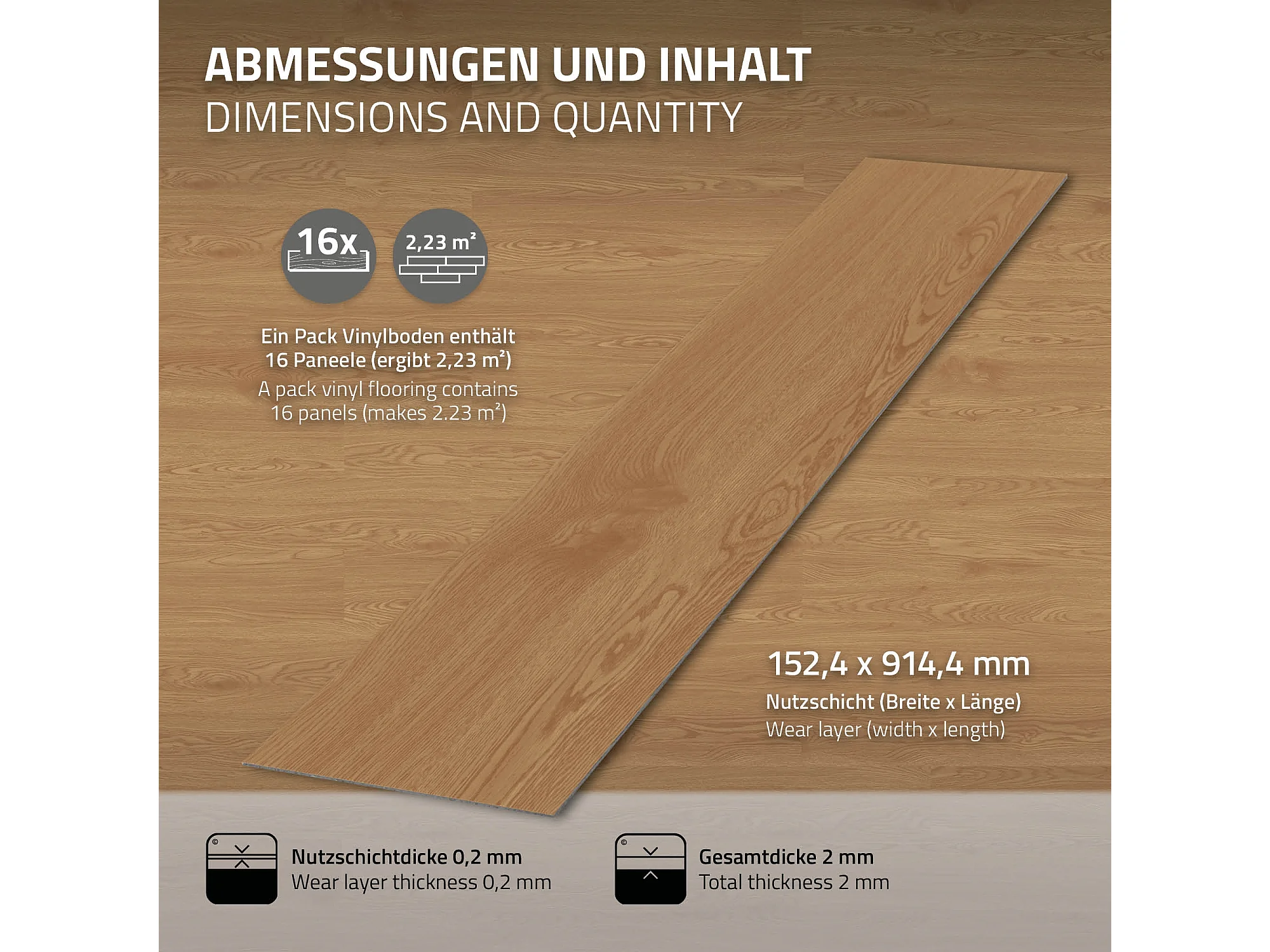 ML-Design Suelo vinílico de PVC 2,23m² color roble marrón 16x planchas autoadhesivas 91,5x15,3cm láminas grosor 2mm efecto madera antideslizante