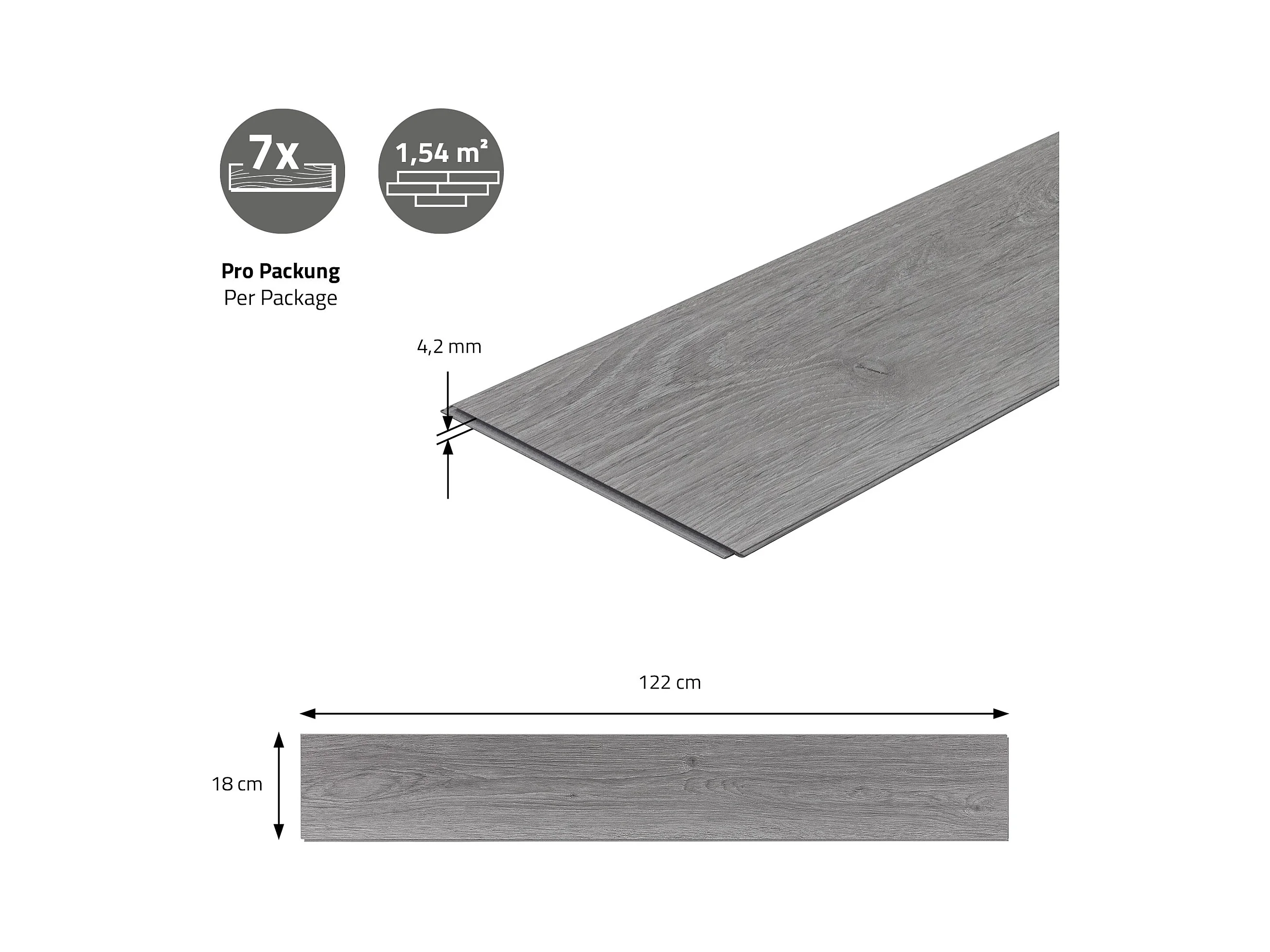 ML-Design Suelo vinílico de PVC 3,08m² color Gris Windswell Hickory 14x planchas sistema de click 122x18 cm láminas grosor 4,2mm efecto madera