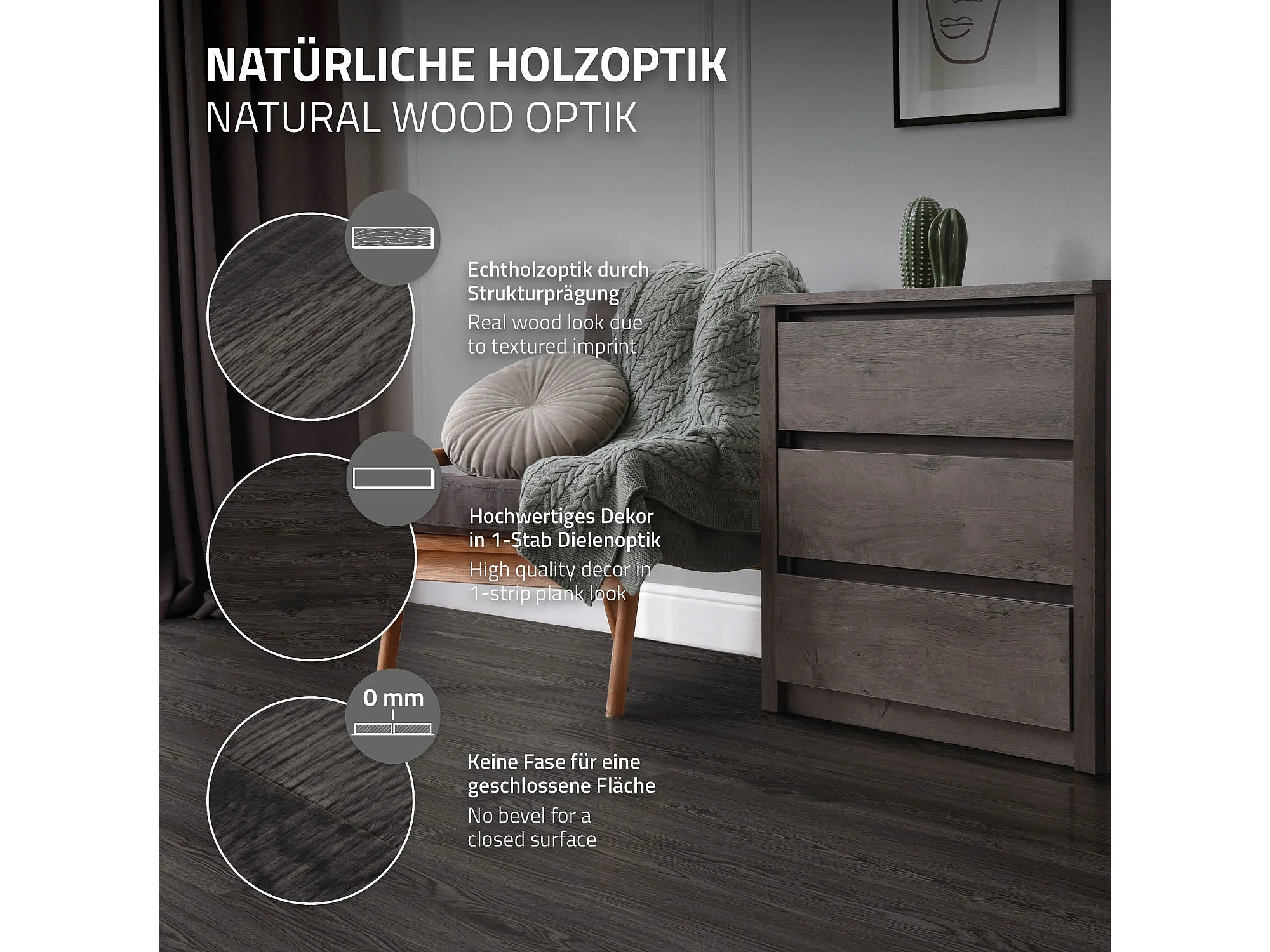 ML-Design Suelo vinílico de PVC 4,46m² color roble gris oscuro planchas sistema autoadhesivo 91,5x15,3cm láminas grosor 2 mm efecto madera
