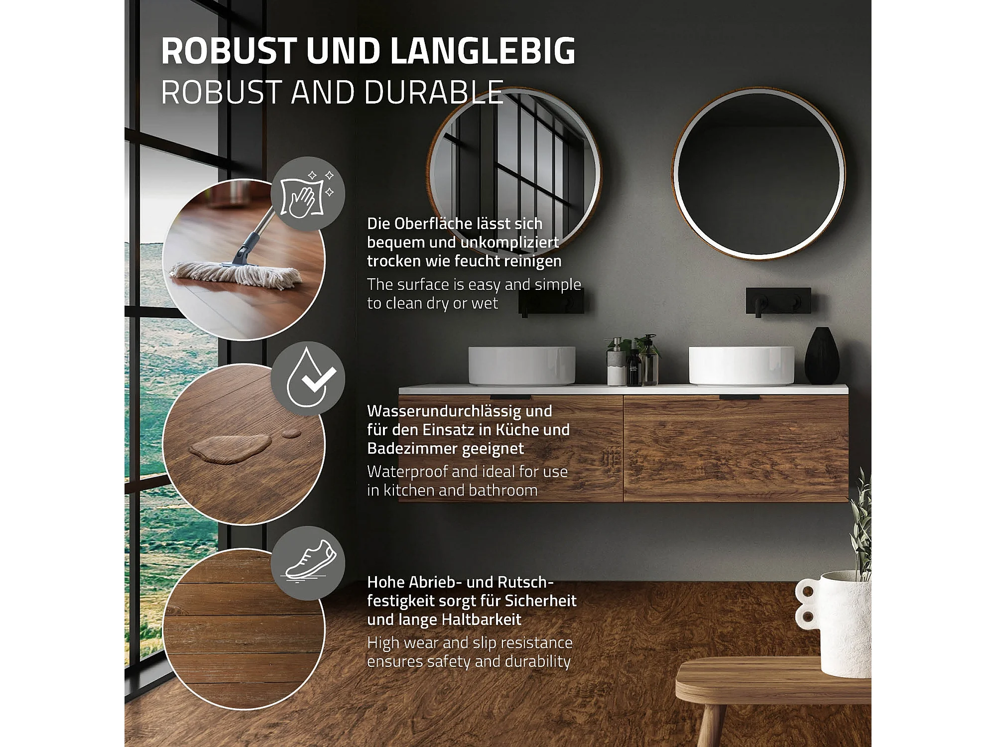 ML-Design Suelo vinílico de PVC 4,62m² color madera acacia marrón 21x planchas sistema click 122x18cm láminas grosor 4,2mm efecto madera impermeable